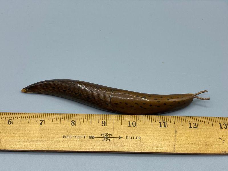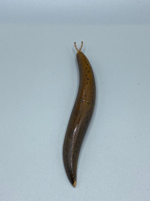 Vintage banana slug fridge magnet. Made of wood. Measures about 6" long. Does have a small split in tail. Made by My Pet Slug 1986.
