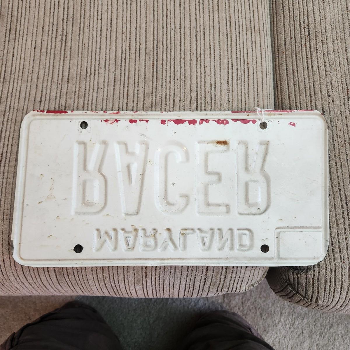 Vintage 1980 RED Maryland Vanity License RACER Man Garage Cave