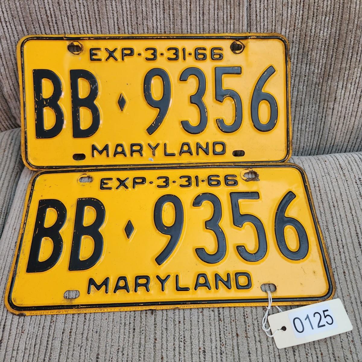 Vintage 1965-1966 Maryland License BB 9356 Man Cave Garage Cave