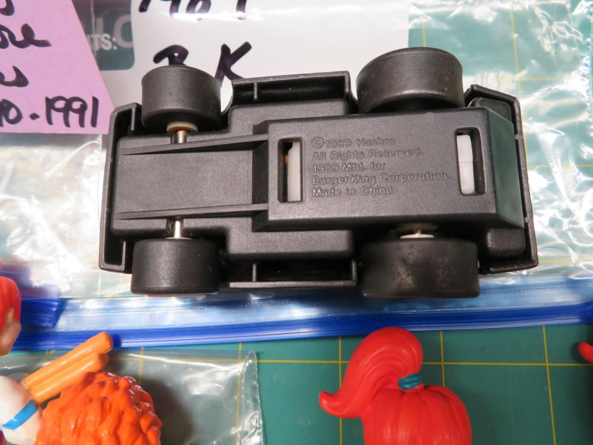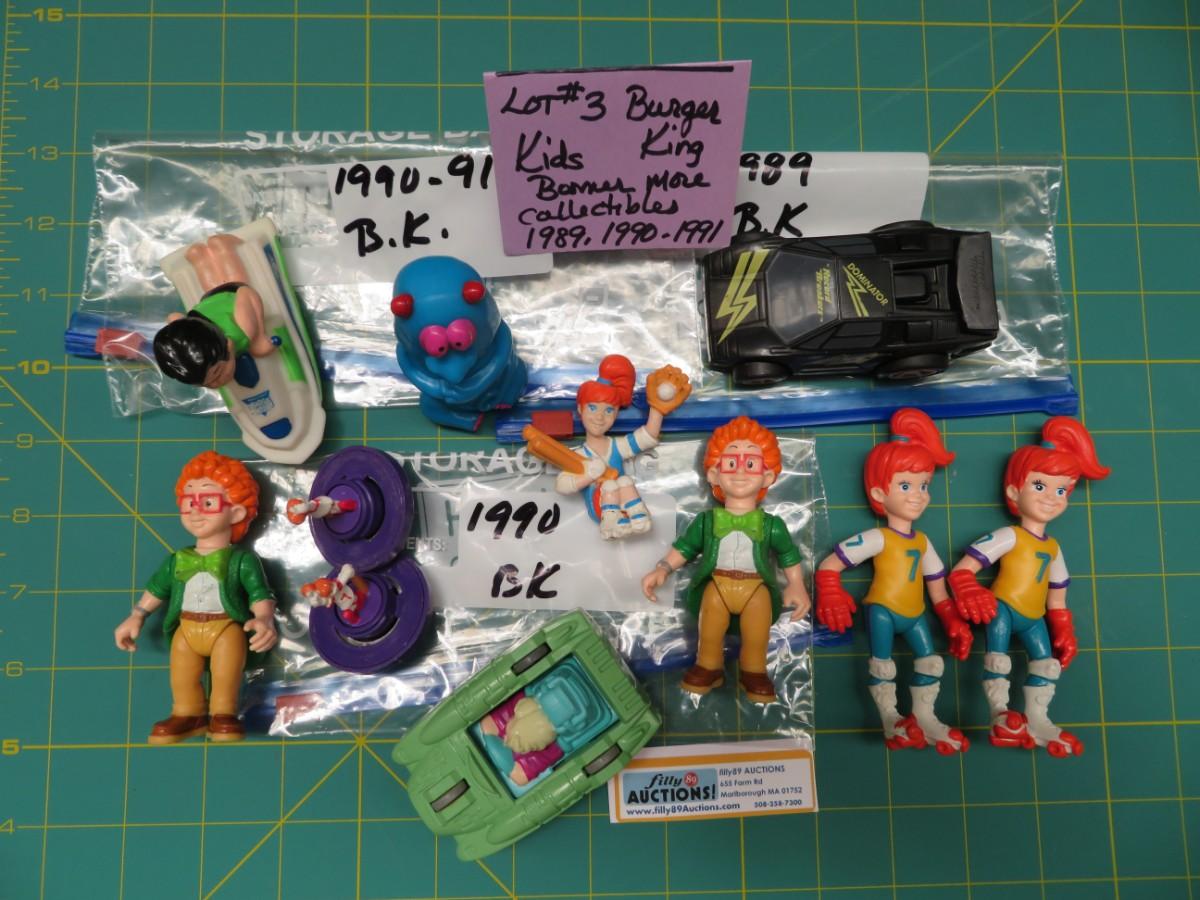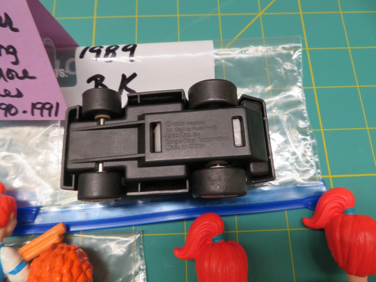 LOT of Vintage Burger King Toys includes 1989 Black Dominator Record Breakers Hasbro Race car, Boomer Club Action Figures, Jet ski. In 3 Bags marked with year.