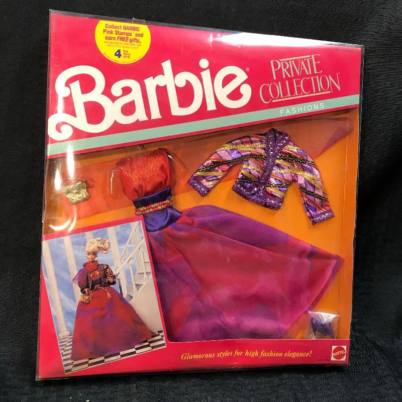 One vintage 1990 Barbie Private Collection Fashions boxed outfit. Packaging is worn from age, but item has never been opened; see pictures.