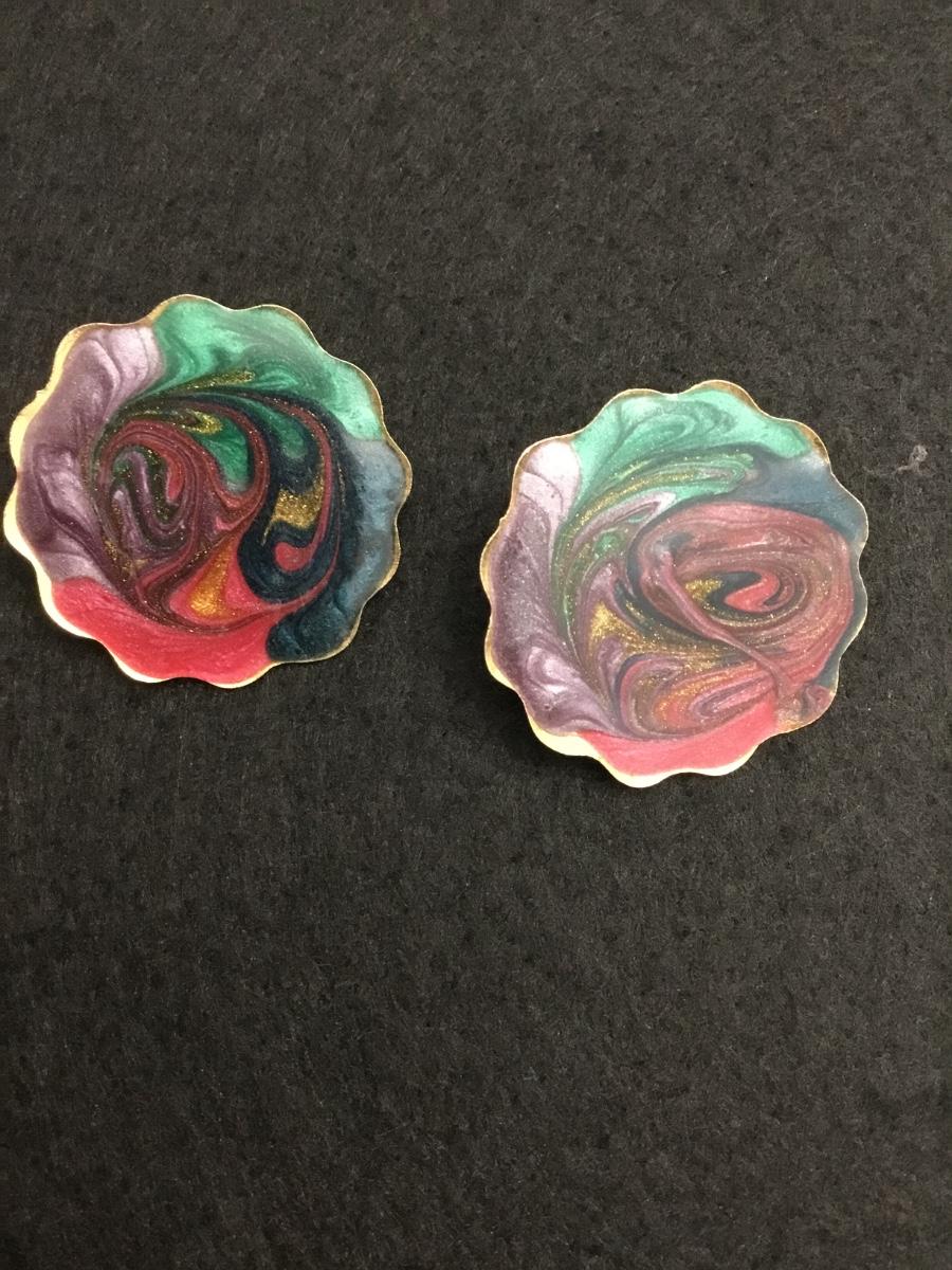 Vintage 1990s pastel paints world gold tone enamel circle stud earrings