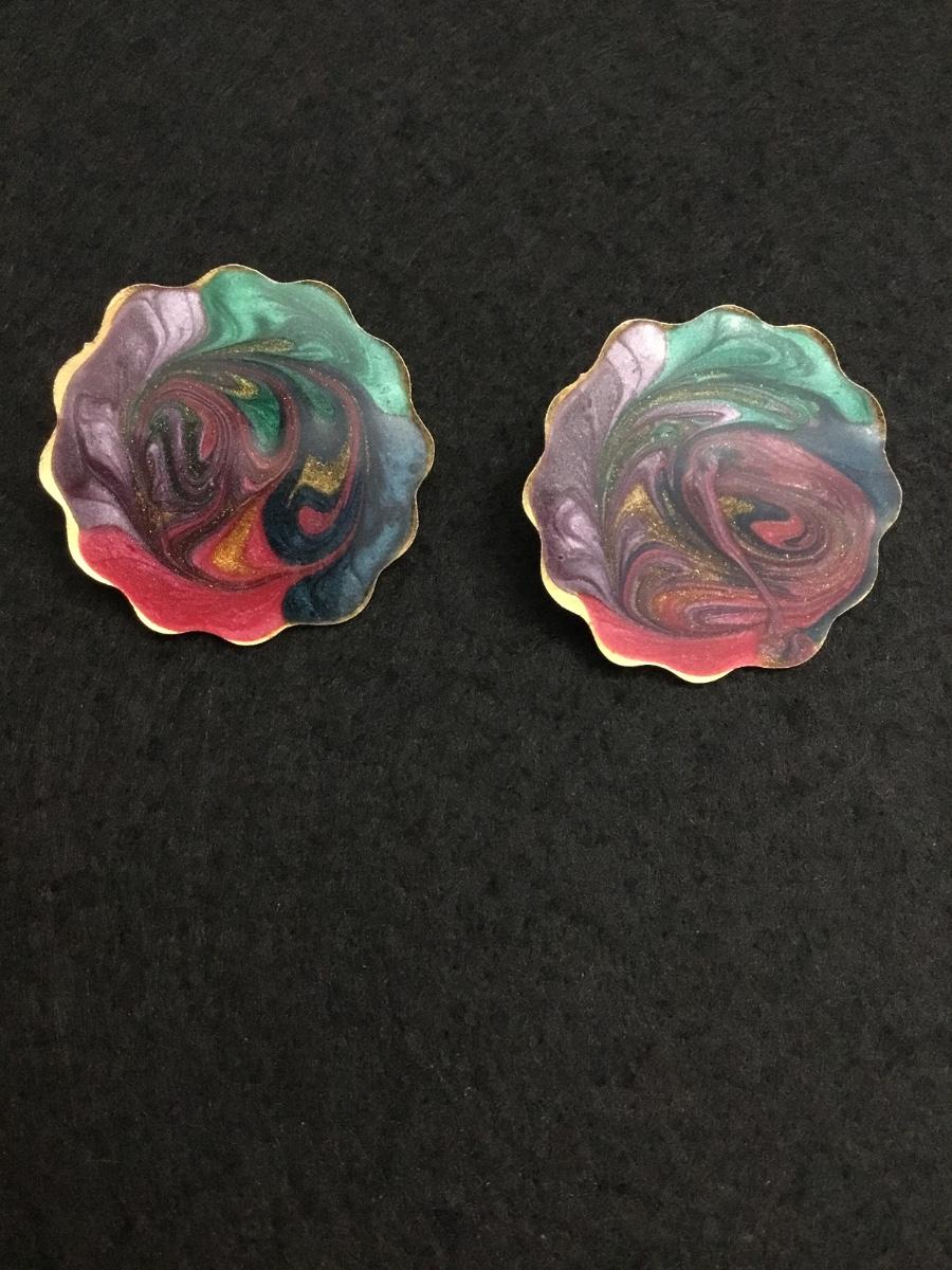 Vintage 1990s pastel paints world gold tone enamel circle stud earrings