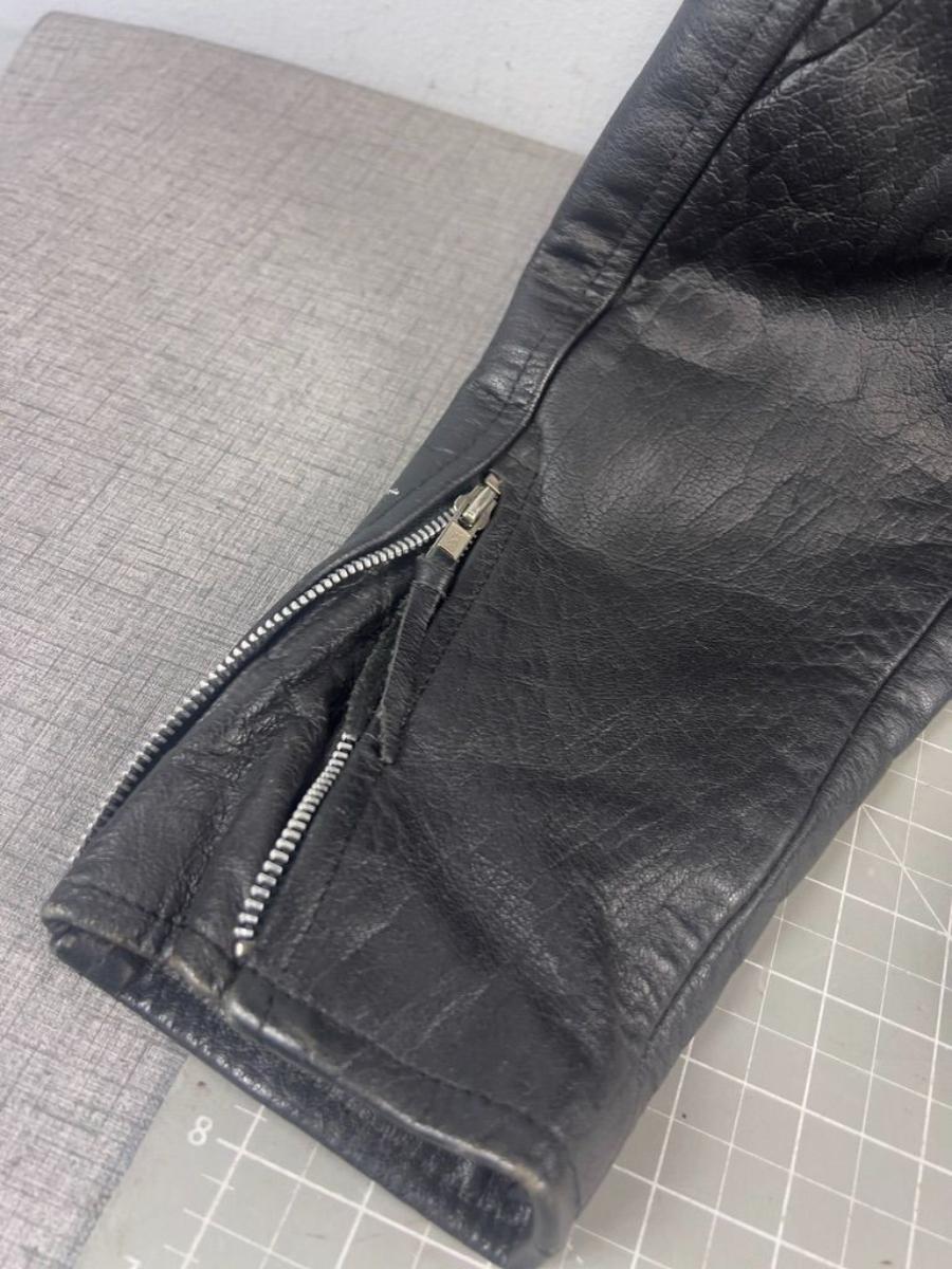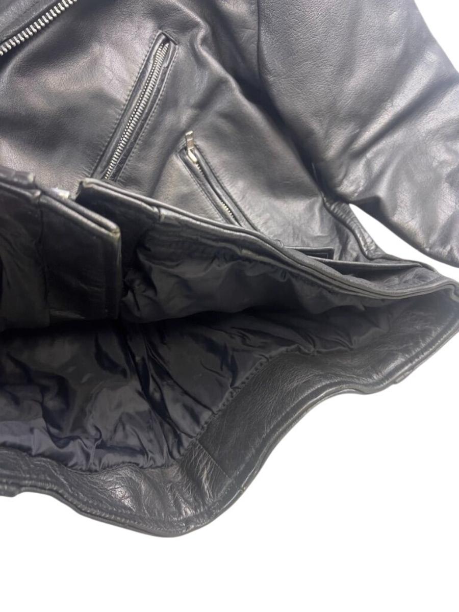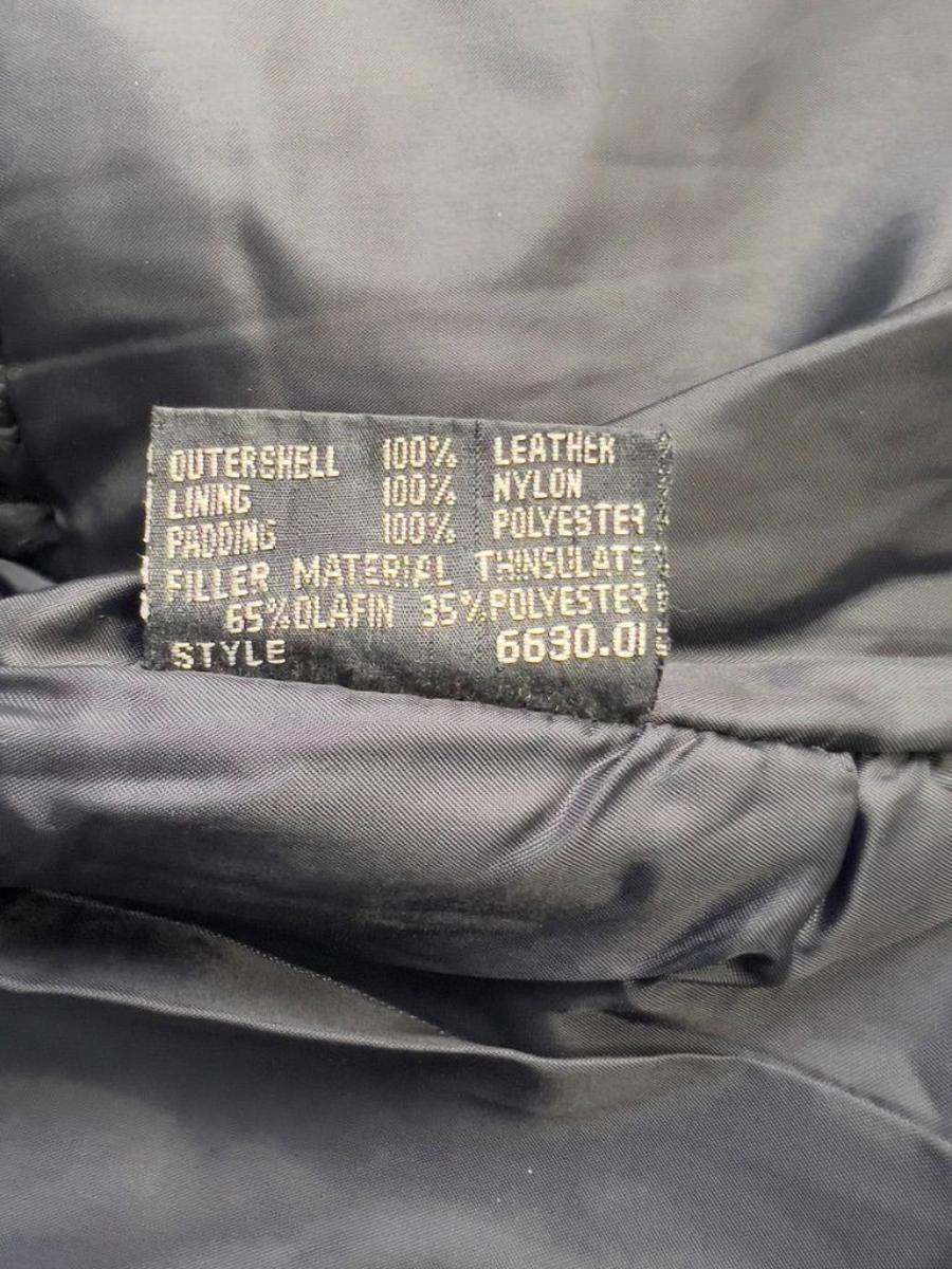 This Wilsons leather motorcycle jacket offers a classic biker look with its durable leather fabric and Thinsulate insulation. Its cropped design and multiple zippered pockets add style and functionality, making it suitable for cool weather rides.