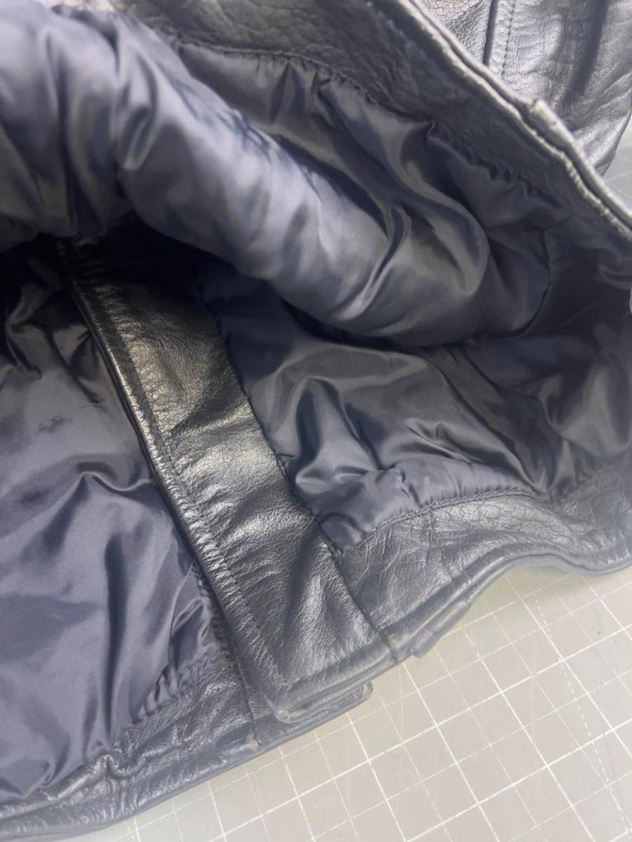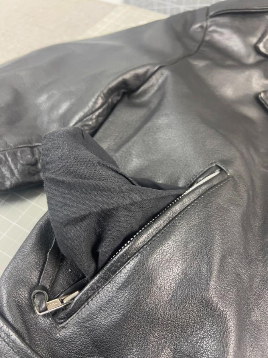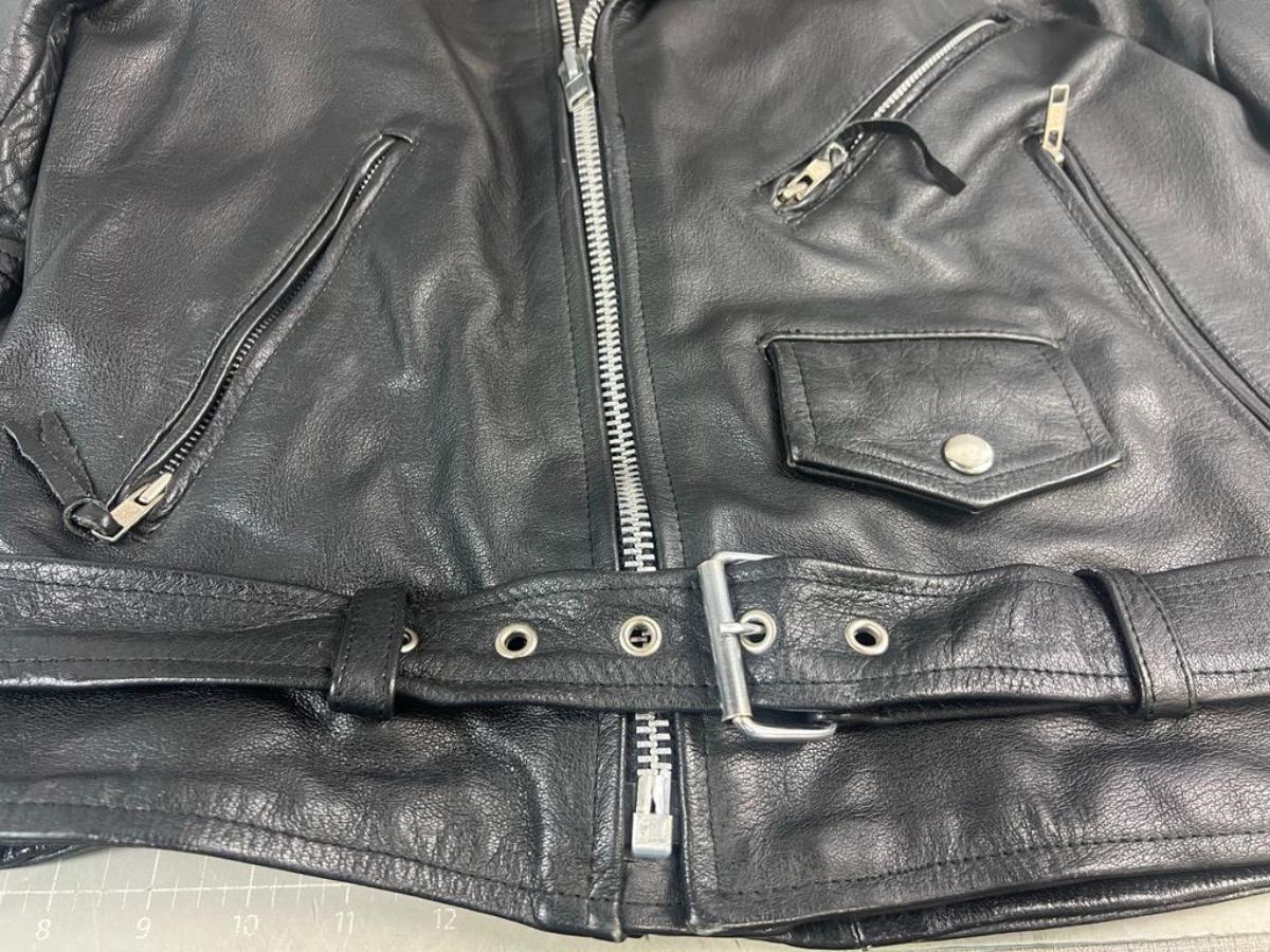 This Wilsons leather motorcycle jacket offers a classic biker look with its durable leather fabric and Thinsulate insulation. Its cropped design and multiple zippered pockets add style and functionality, making it suitable for cool weather rides.