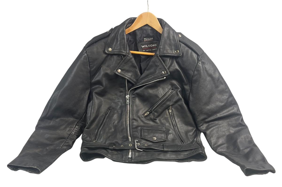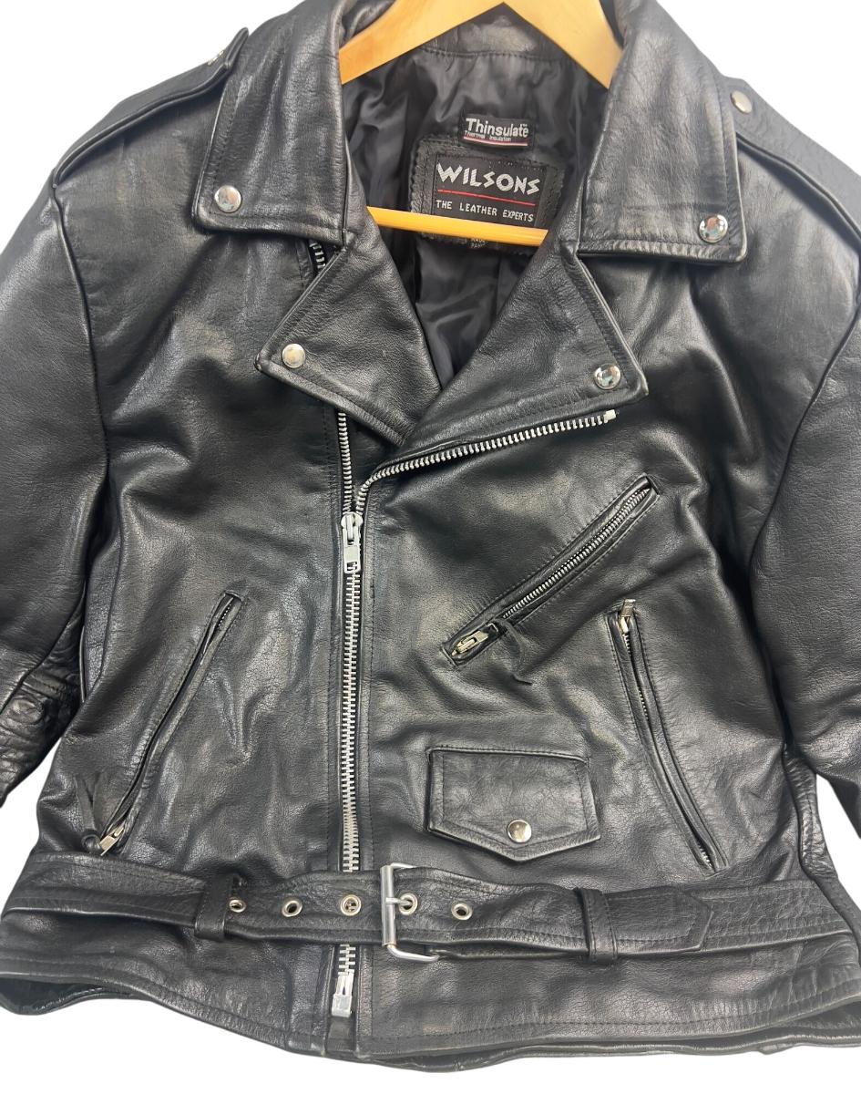 Vintage 1990's Wilsons Leather Motorcycle Jacket Biker Punk Cropped Sz M