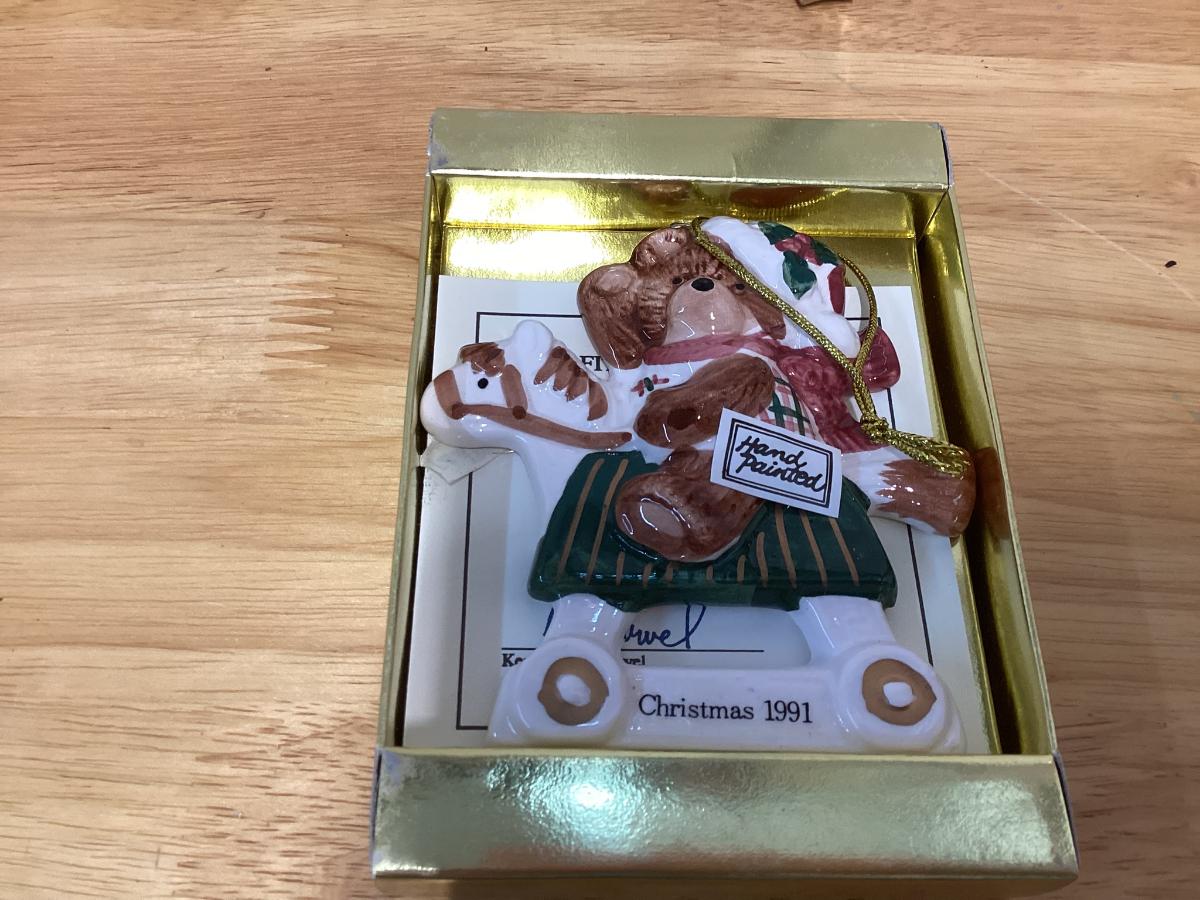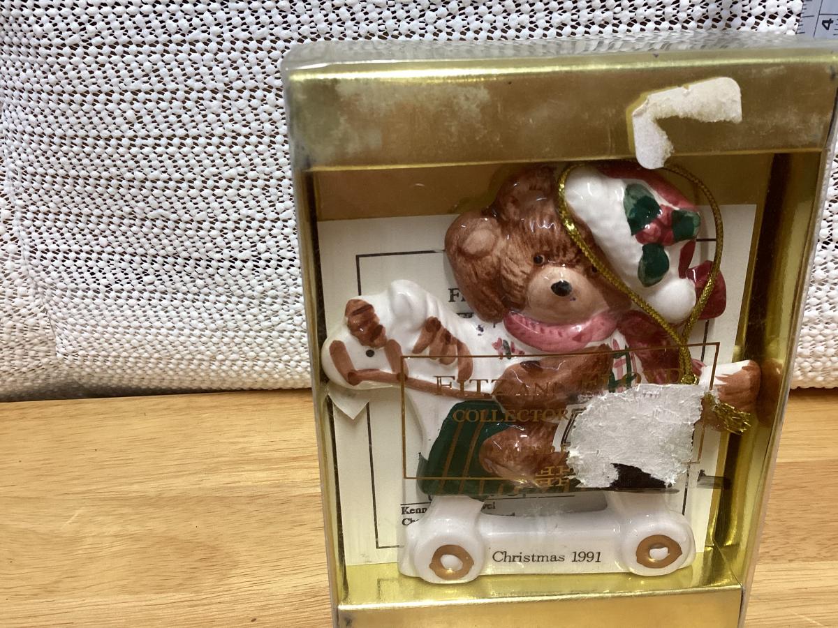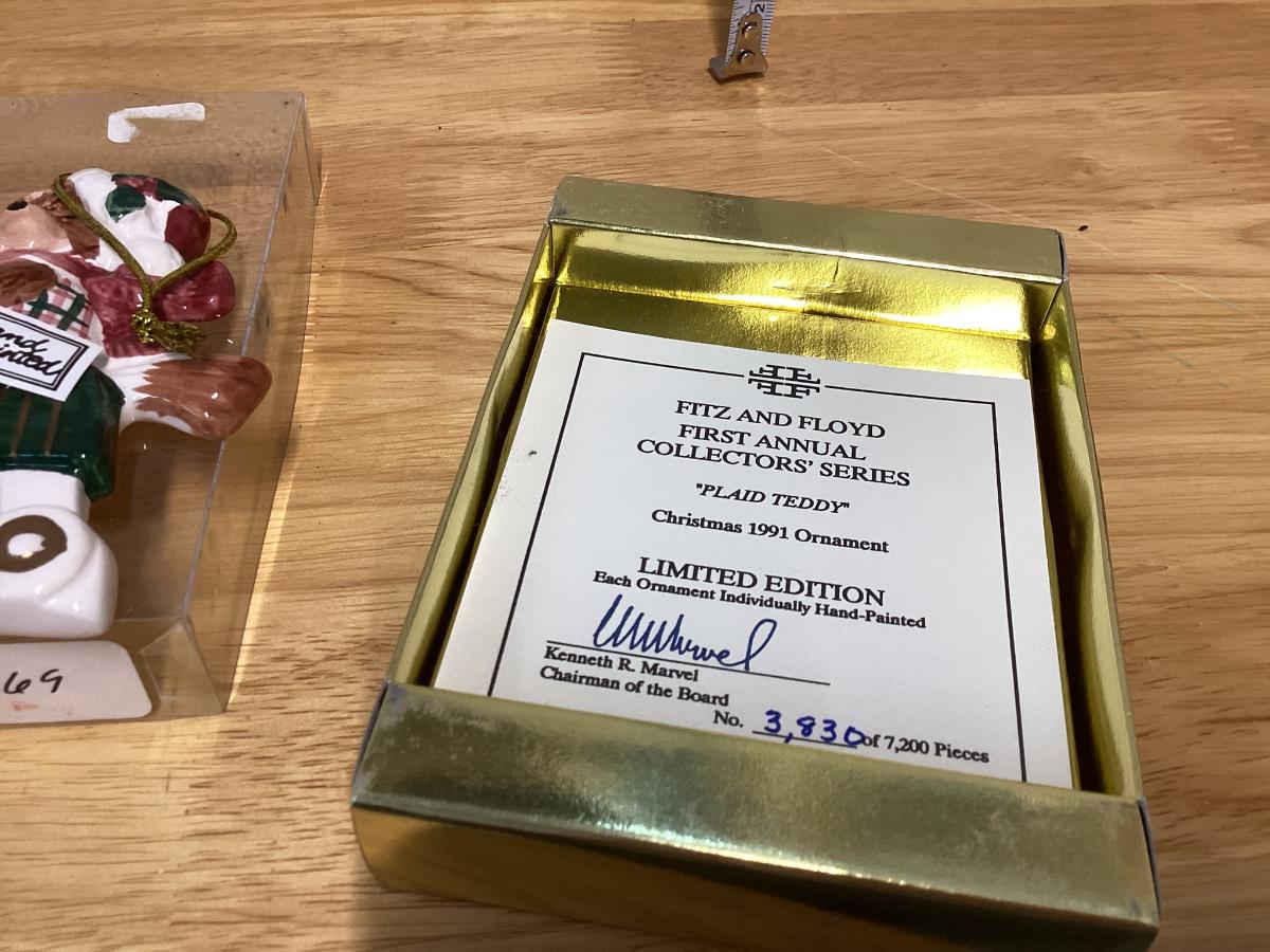 Vintage 1991 Fitz & Floyd 1st Annual Plaid Teddy Bear Christmas Ornament.