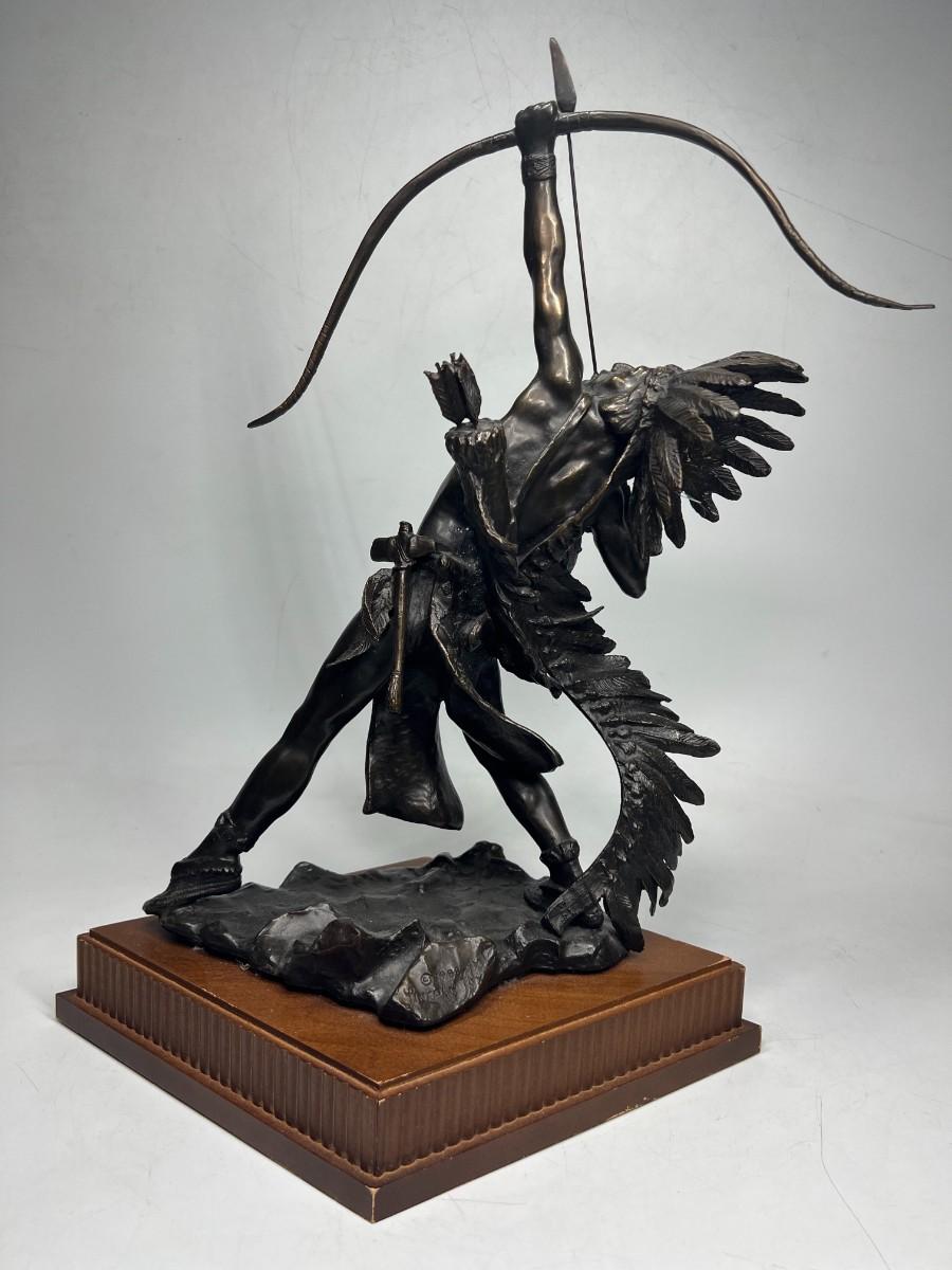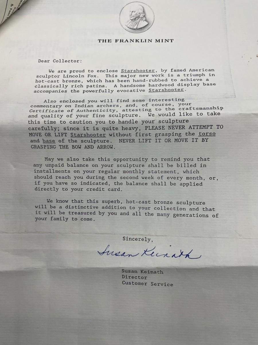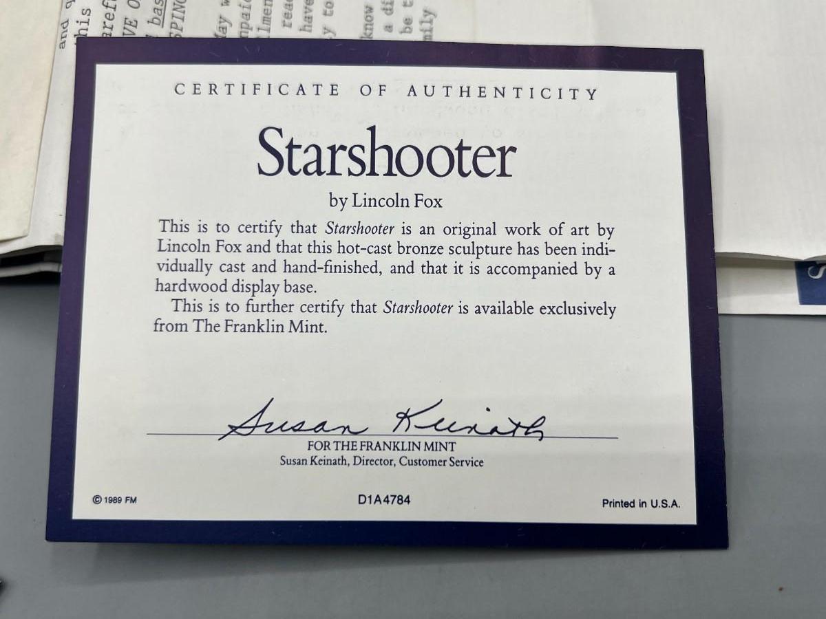 Vintage 1991 Franklin Mint Native American Starshooter by Lincoln Fox Indian Bronze Statue with Provenance & COA