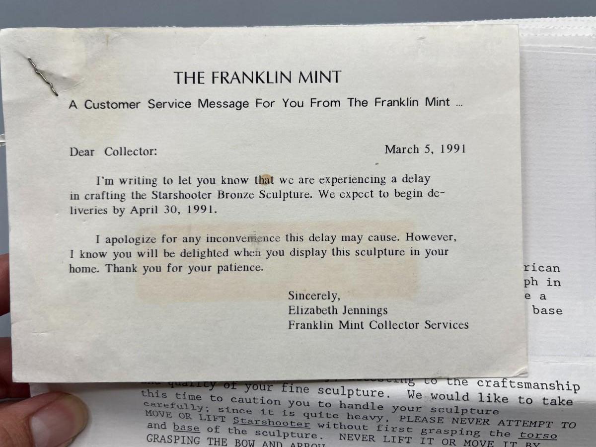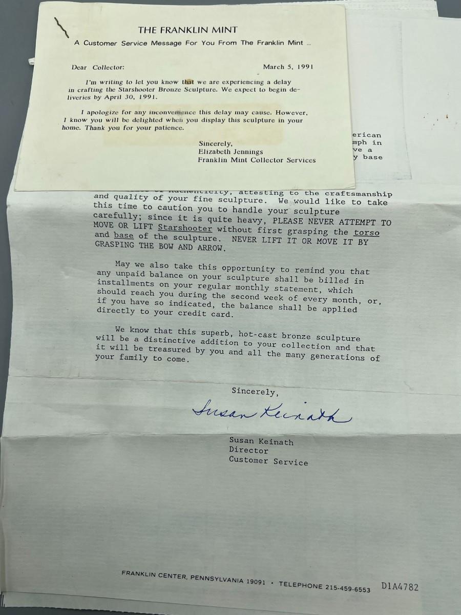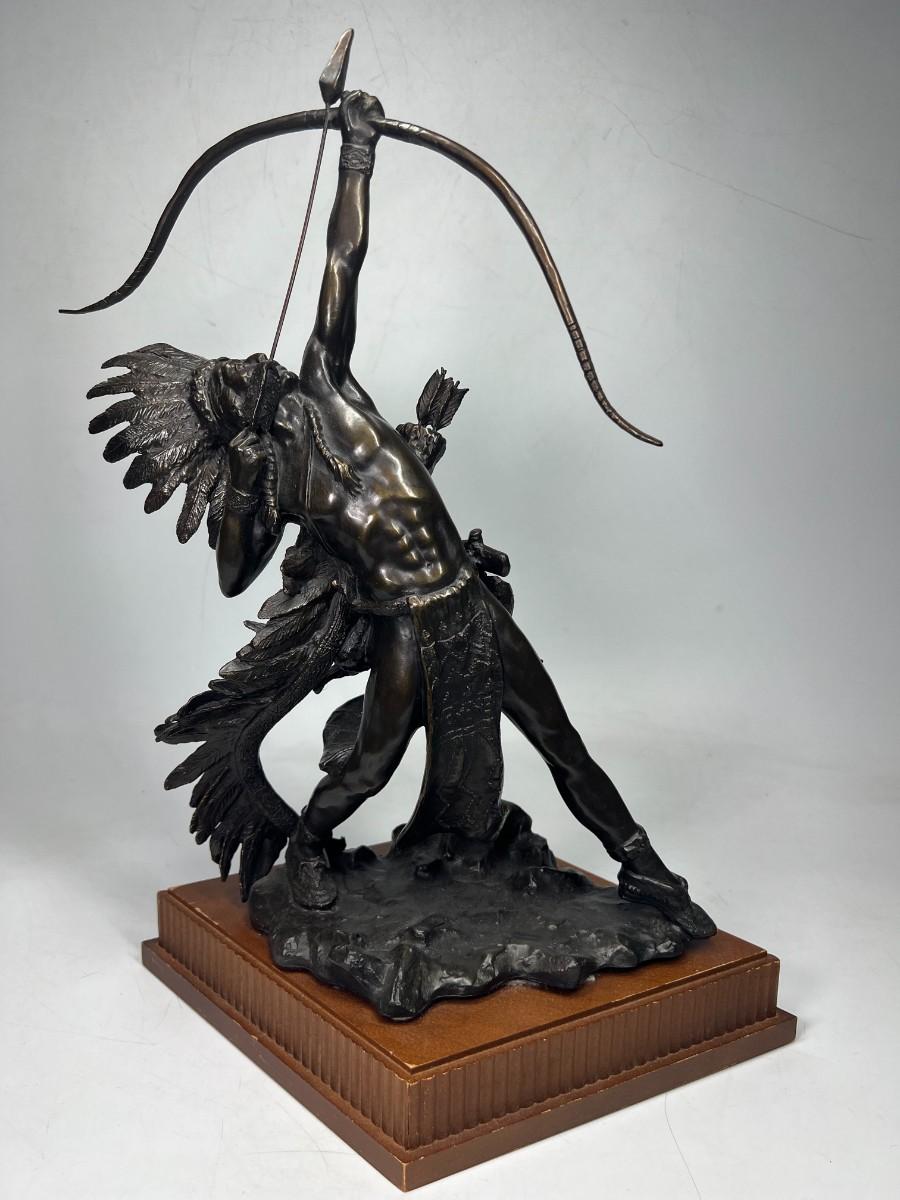Vintage 1991 Franklin Mint Native American Starshooter by Lincoln Fox Indian Bronze Statue with Provenance & COA