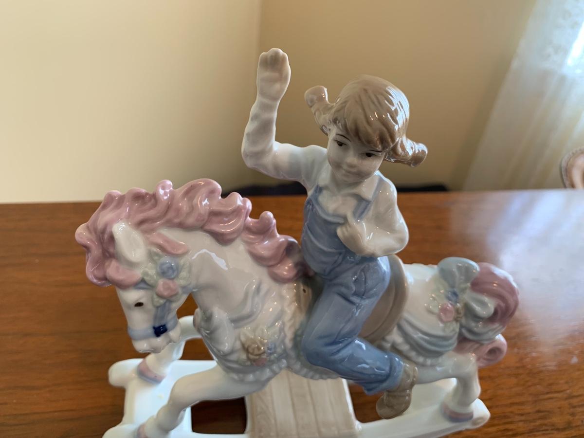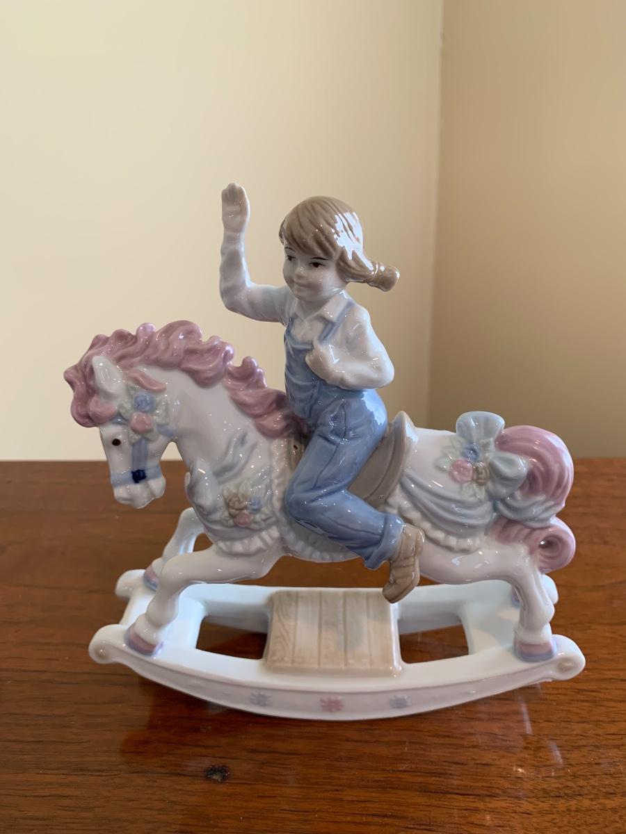 Vintage 1991 Girl on Rocking Horse Porcelain Paul Sebastian Statuette.Excellent condition