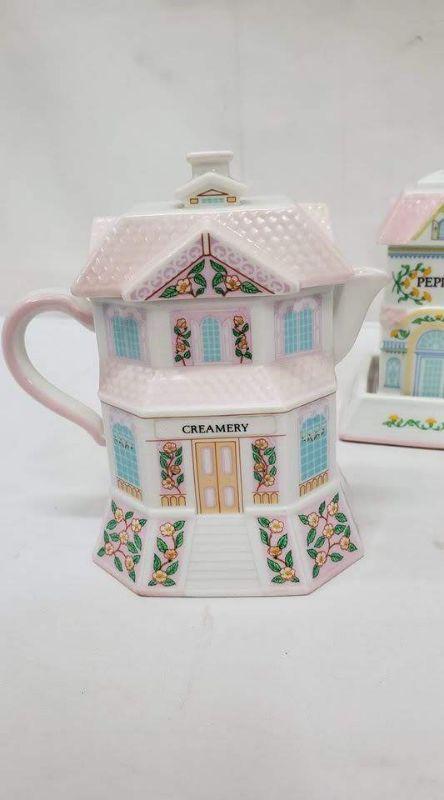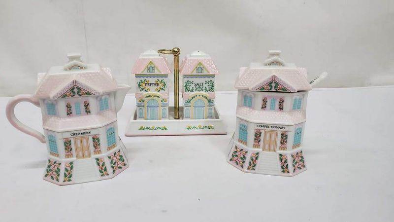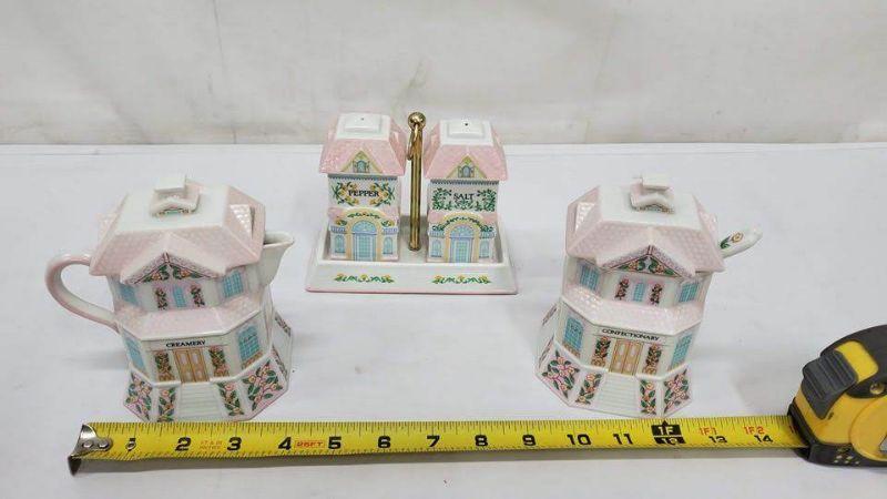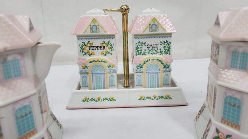Vintage 1991 Lenox Pink Victorian House Salt & Pepper Shakers, Creamer & More