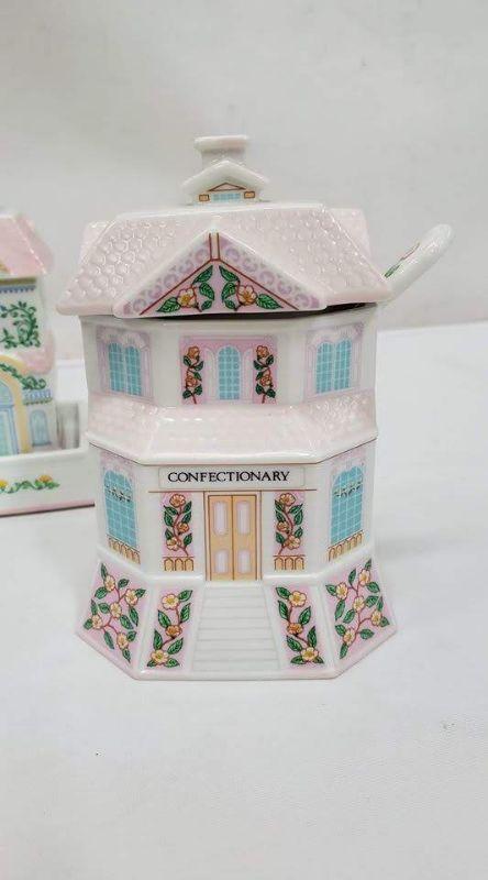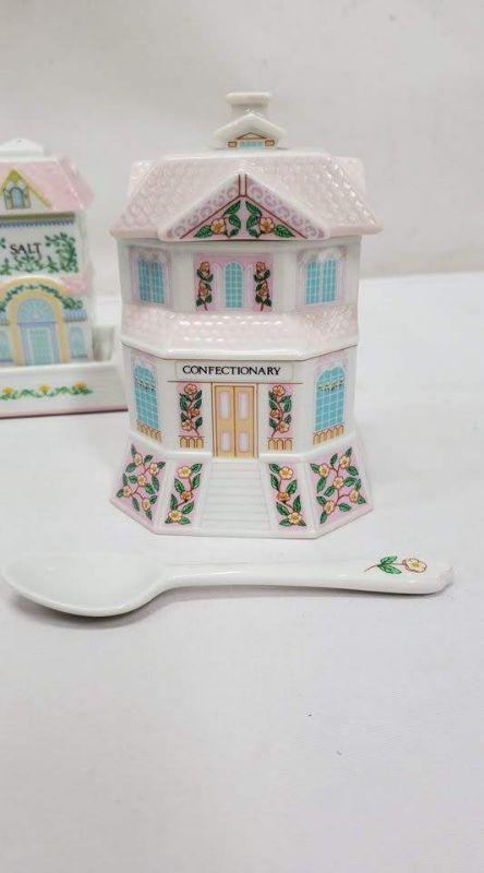 Vintage 1991 Lenox Pink Victorian House Salt & Pepper Shakers, Creamer & Confectionary w/Spoon - New without Box