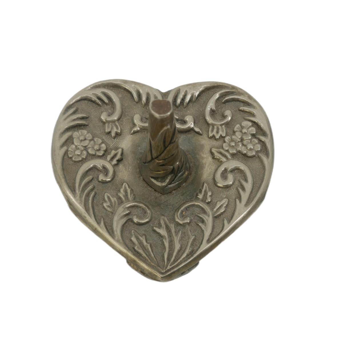 Vintage 1992 Godinger Silver Company metal heart shaped ring holder. Measures approximately L 3" x H 2.5" x W 3".