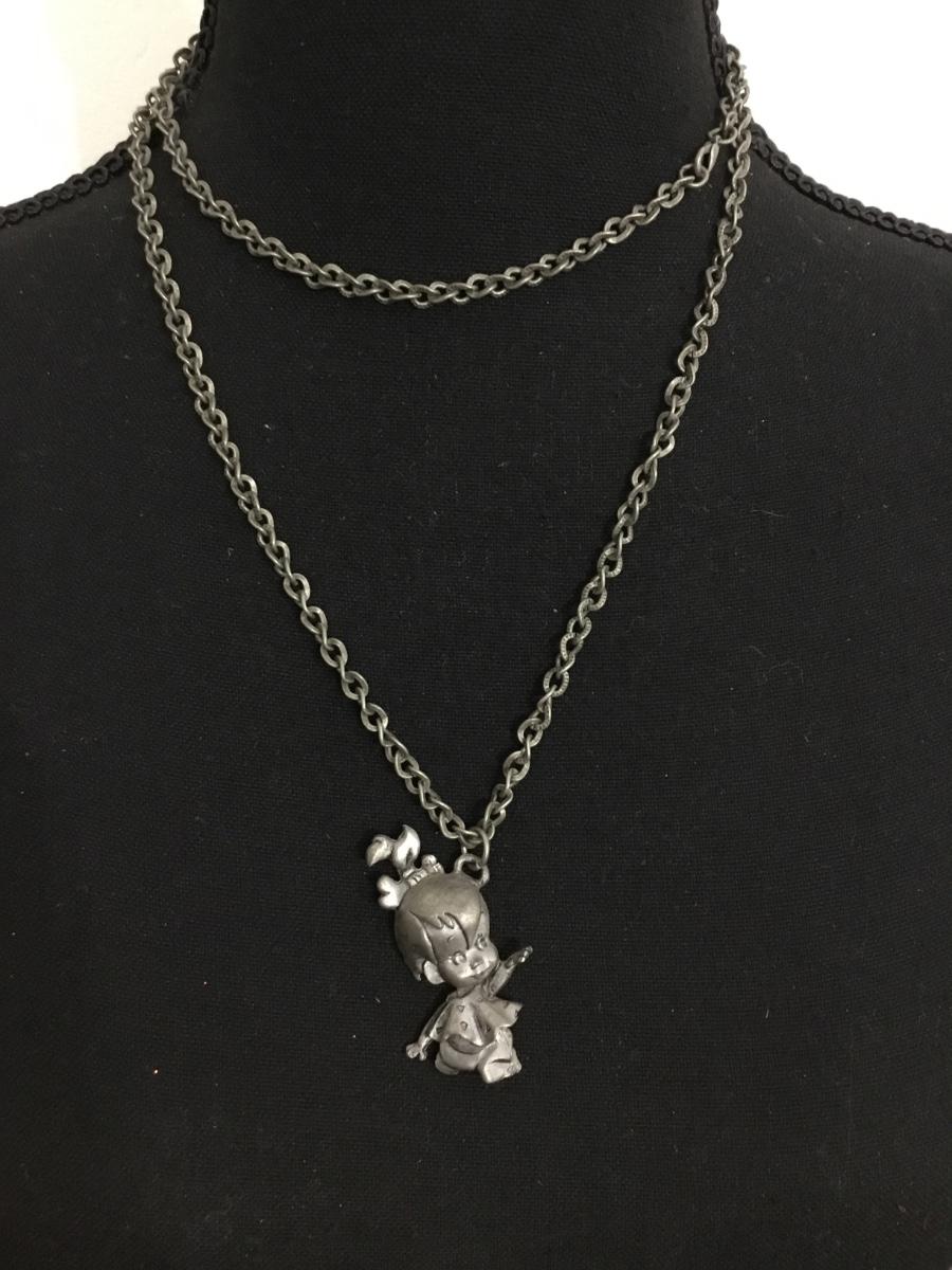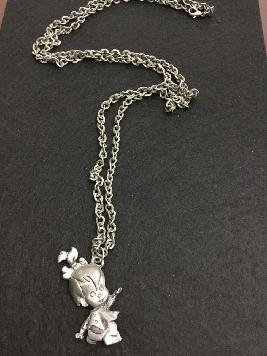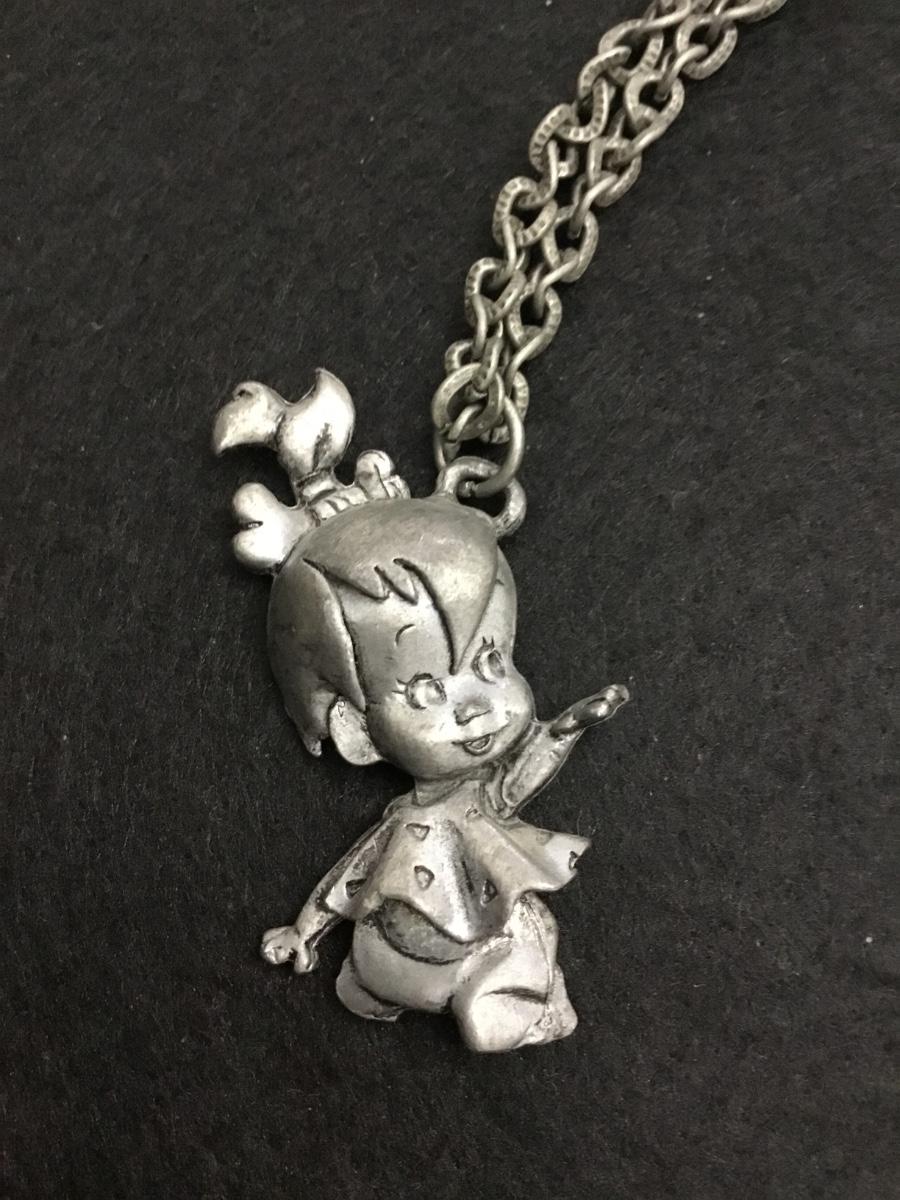 Vintage 1994 Flintstones baby pebbles , pewter necklace and pendant