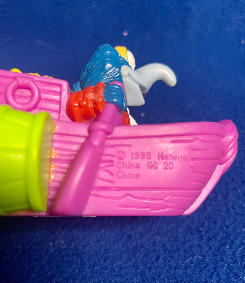 Vintage 1995 Gonzo Boat Toy McDonald's Jim Henson Muppet. Pushing down the yellow treasure button activates the paddle wheel.