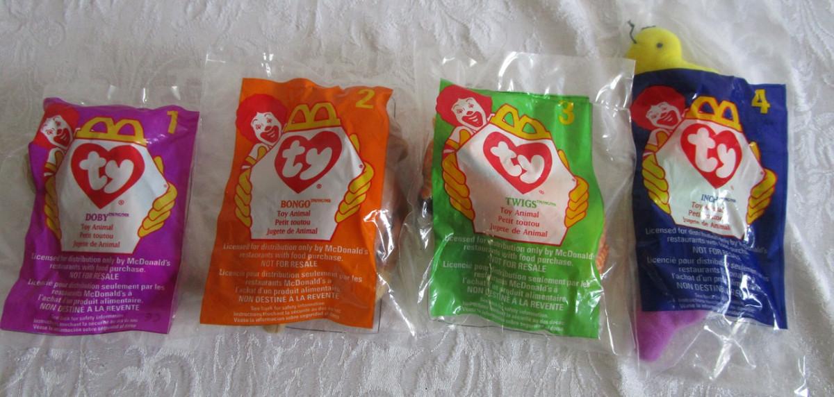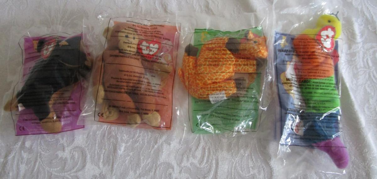 Vintage 1998 McDonald's beanie babies in bag 1-4
