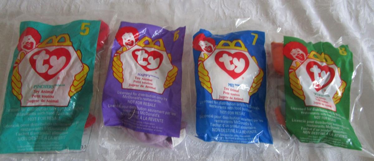 Vintage 1998 McDonald's beanie babies in bag 5-8