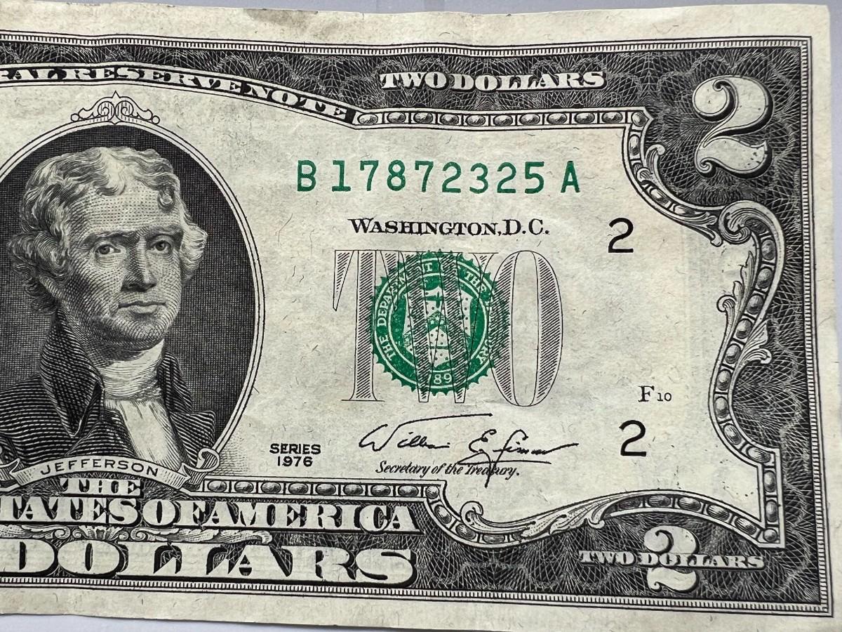 Vintage $2 Dollar Bill 1976 Series New York Bank US Collectible Currency