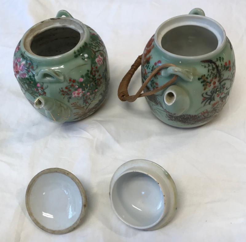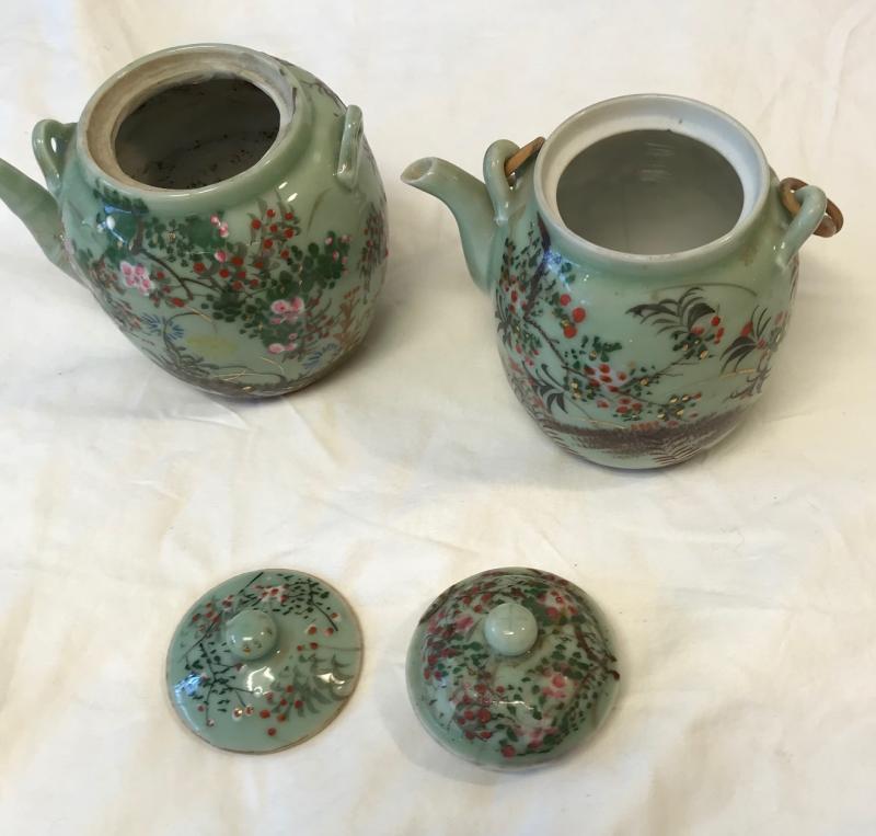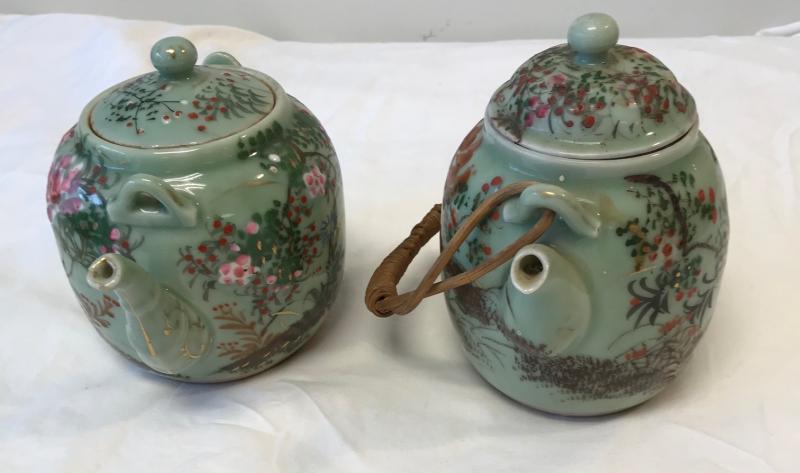 Vintage 2 Floral Mint Green Tea Pots