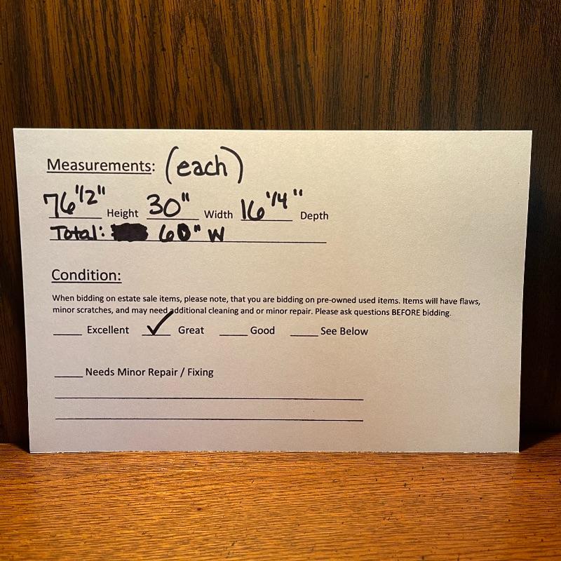 The Address & Appointment Calendar will be sent to winning bidders via Invoice and/or Text Message within 6 hours after the end of the sale. You are responsible for booking your own appointment time within 12 hours once the calendar has been sent to you. Please contact me immediately if you have any questions.