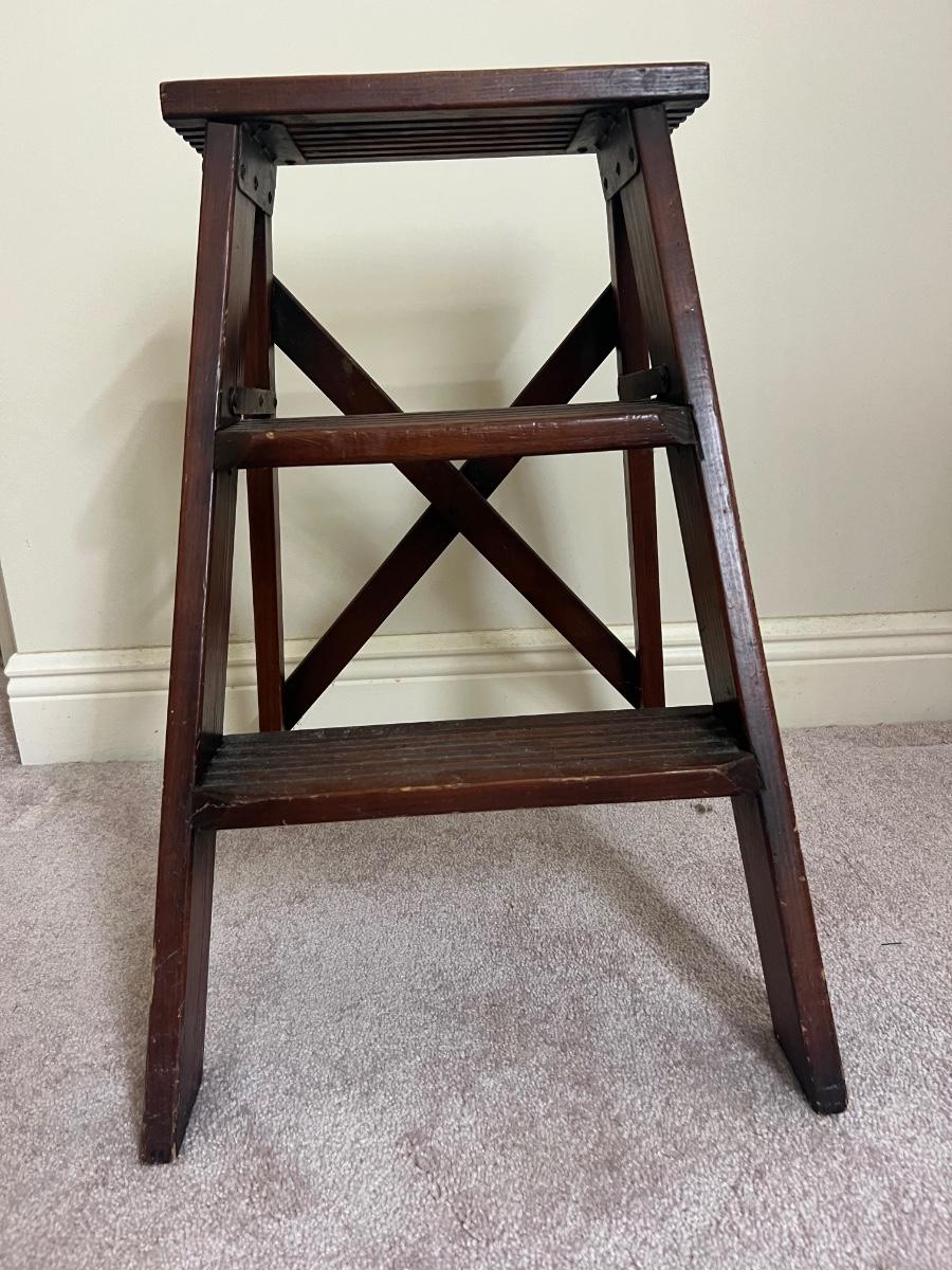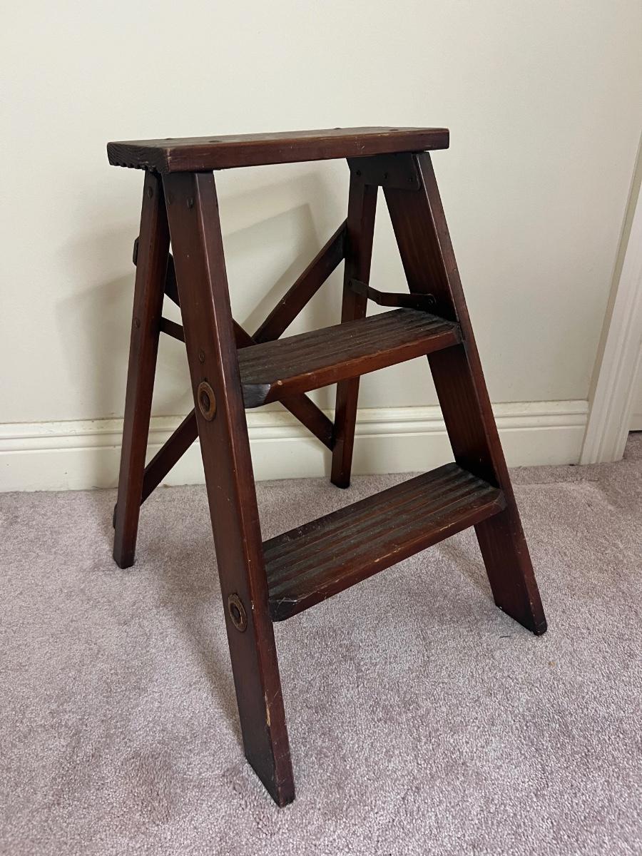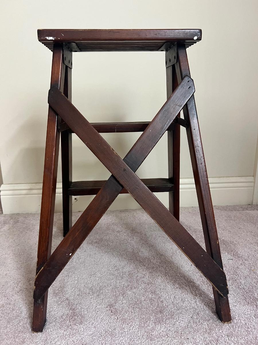 Vintage 2 Step With Treads Natural Wood Folding Step Stool. Measures 22 inches