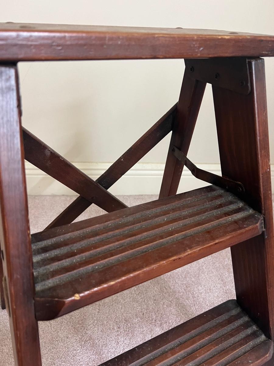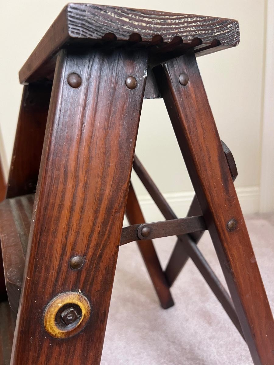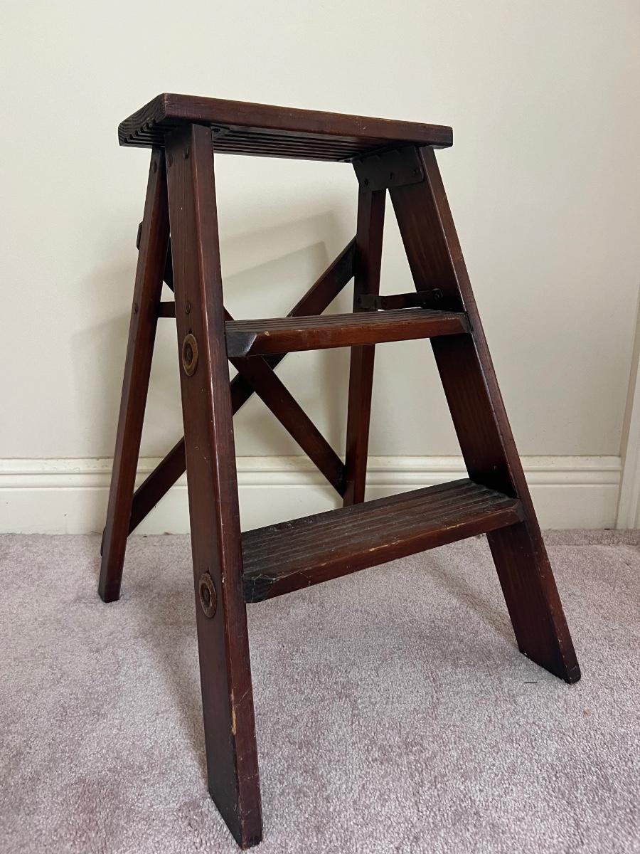 Vintage 2 Step With Treads Natural Wood Folding Step Stool. Measures 22 inches