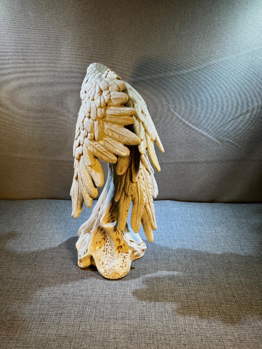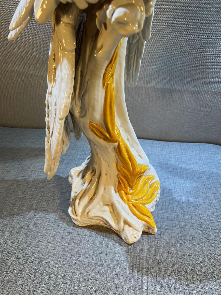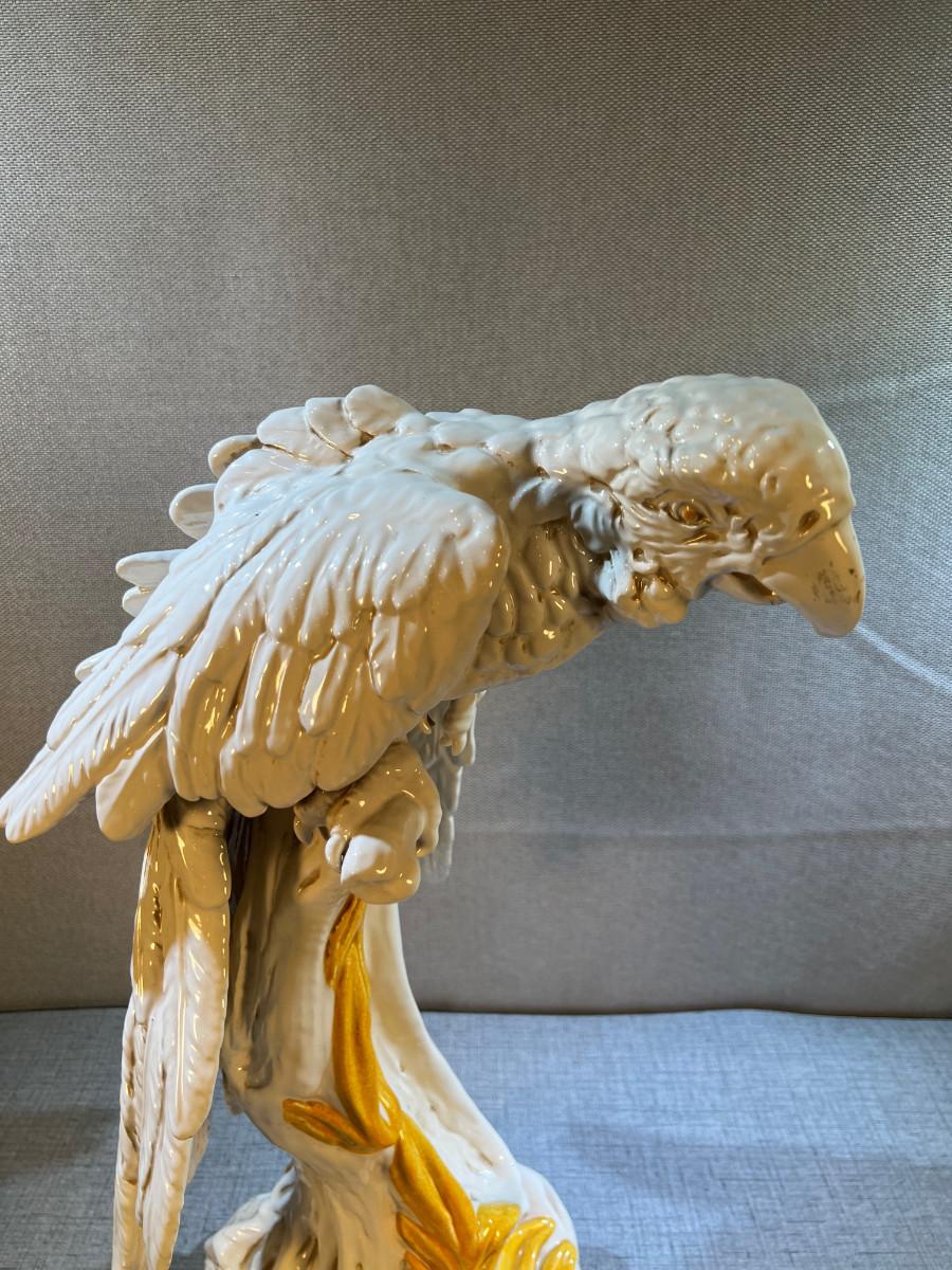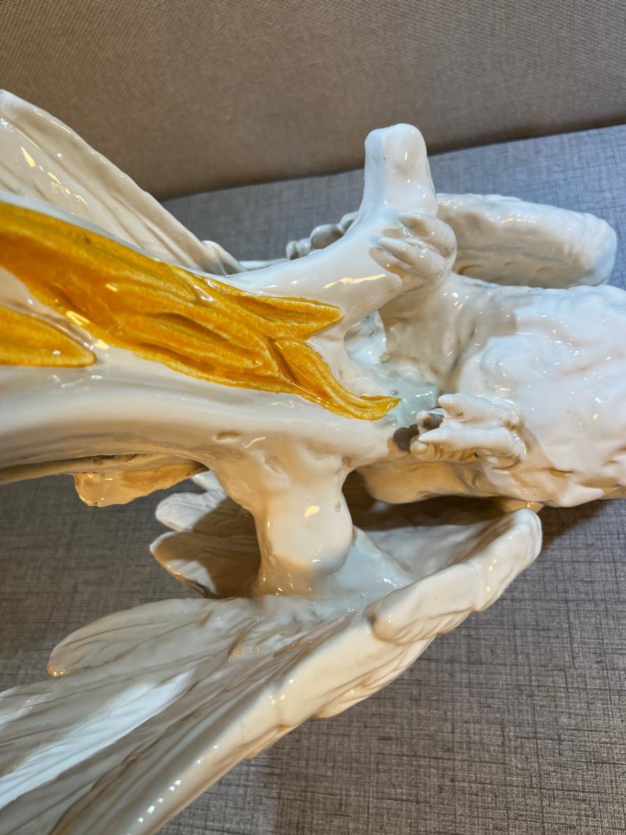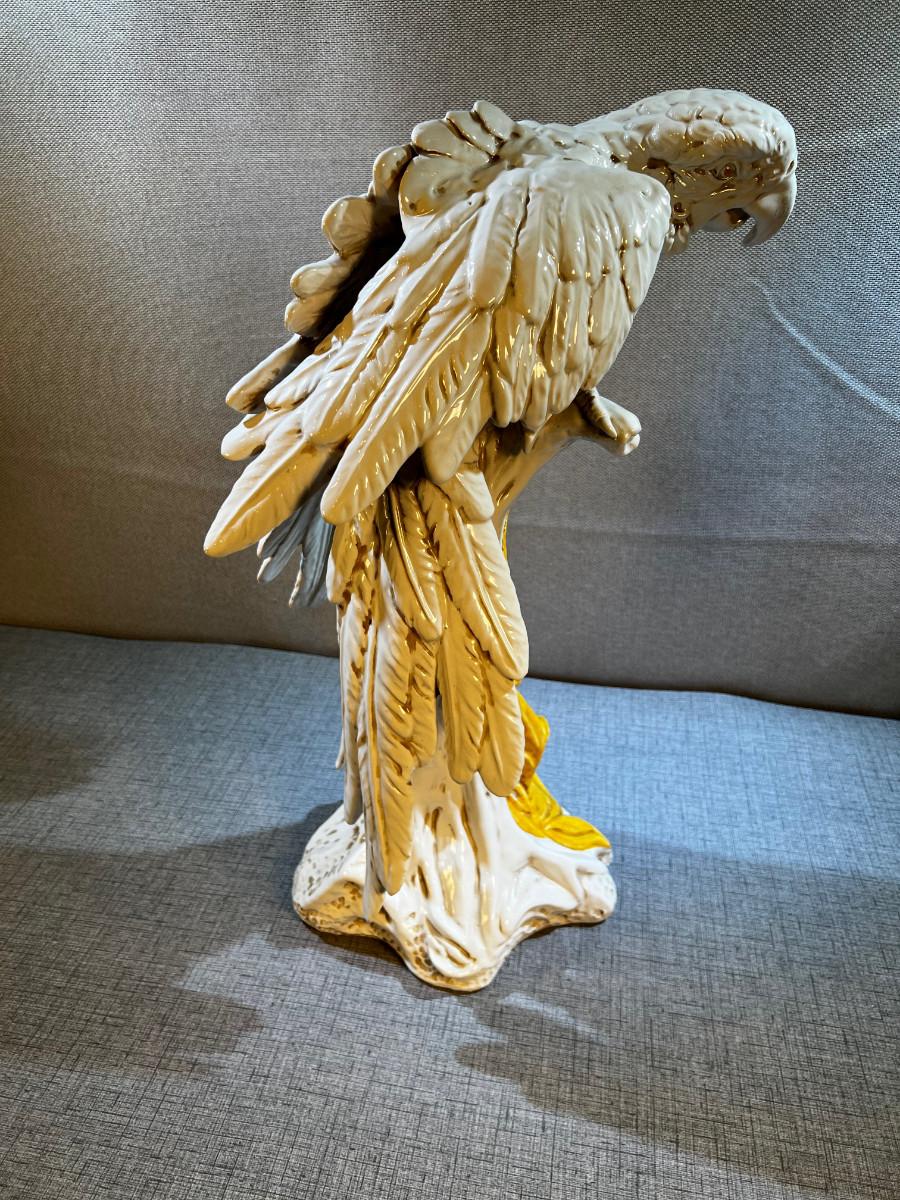 Large ceramic bird sculpture 20" tall excellent condition unknown maker possible early 20th century majolica?