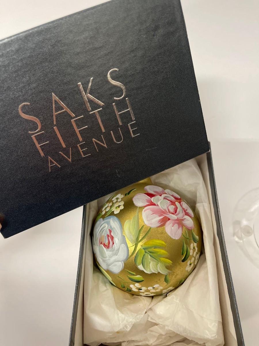 Vintage 2002 Saks Fifth Avenue Annual Christmas Holiday Ball Hand Made Ornament, Signed, excellent condition. 4”. Hand blown glass ornament, hand painted, made in Italy.