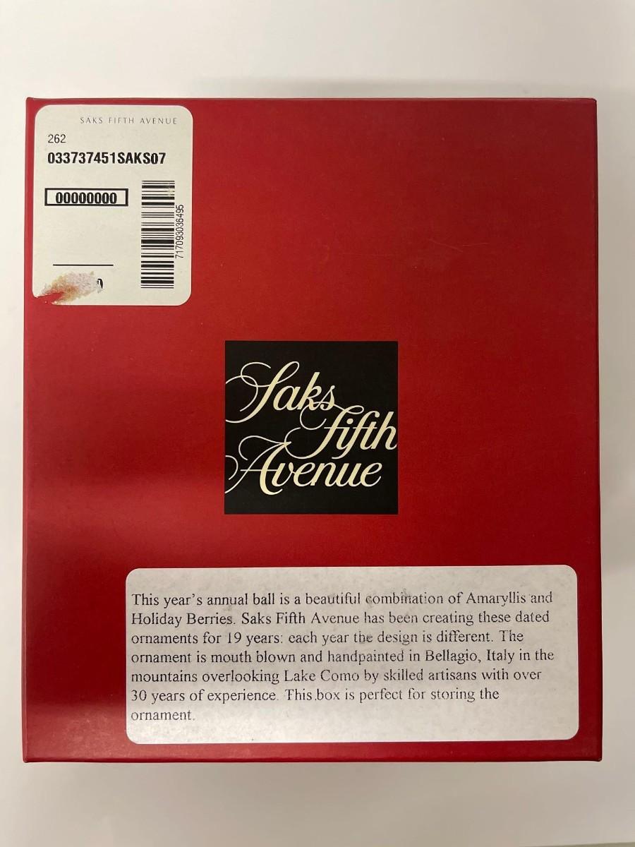 Vintage 2007 Saks Fifth Avenue Annual Christmas Holiday Ball Hand Made Ornament, Signed