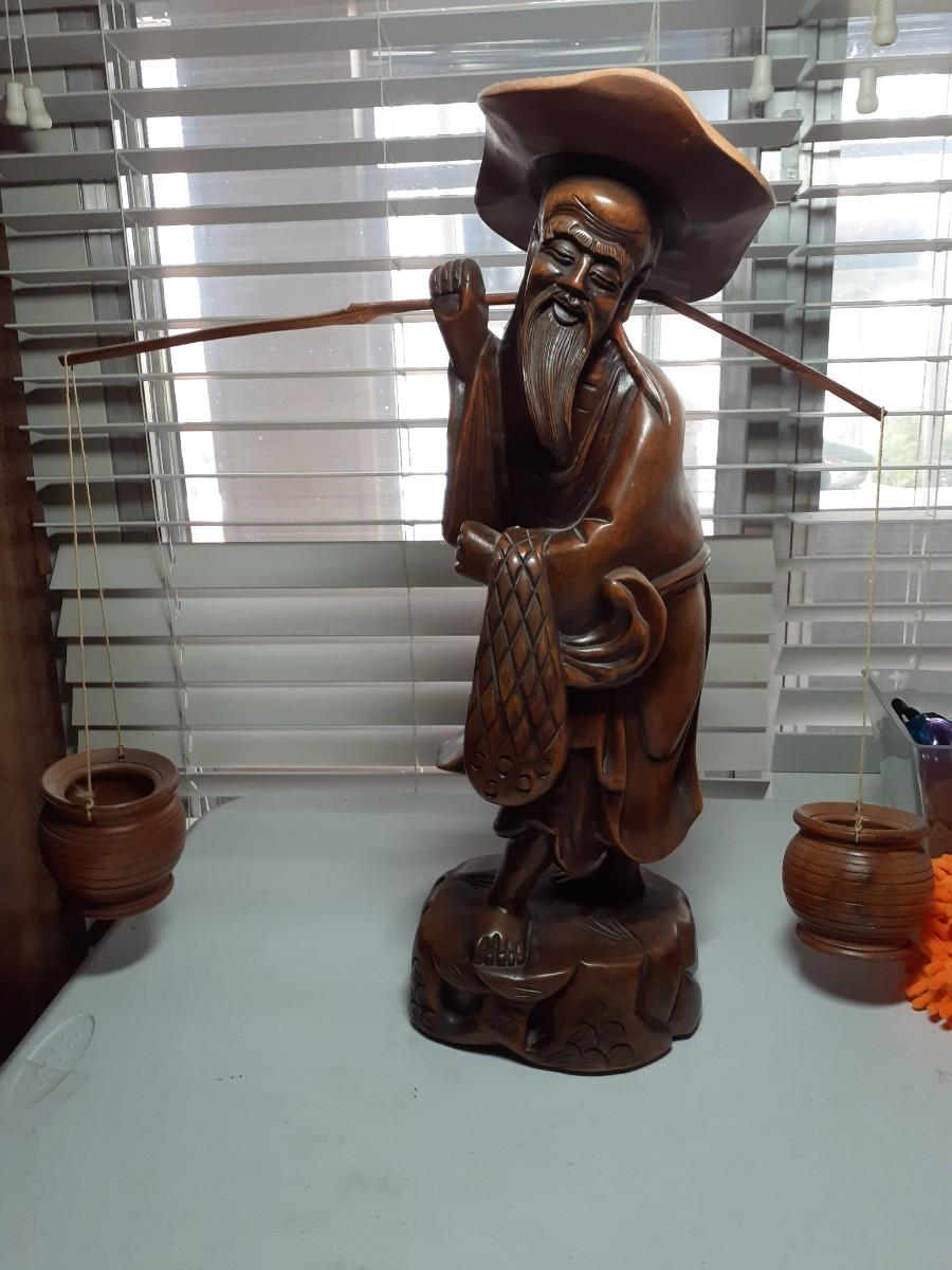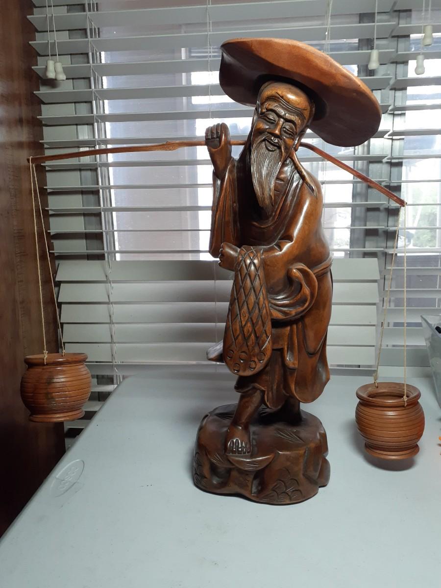 Vintage 20in tall hand carved chinese man