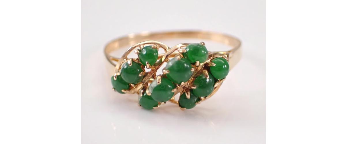 Vintage 20K Yellow Gold Jade Ring Size 8