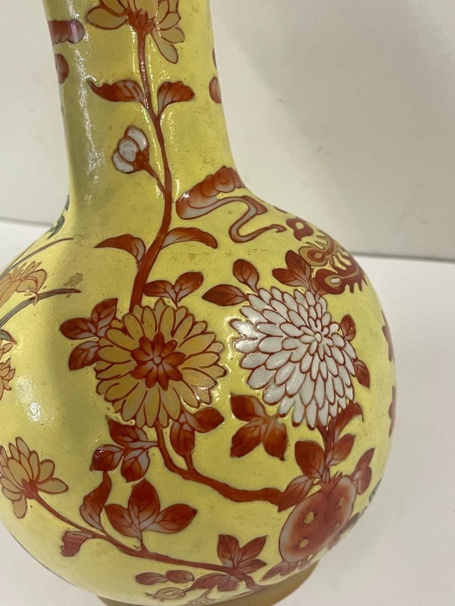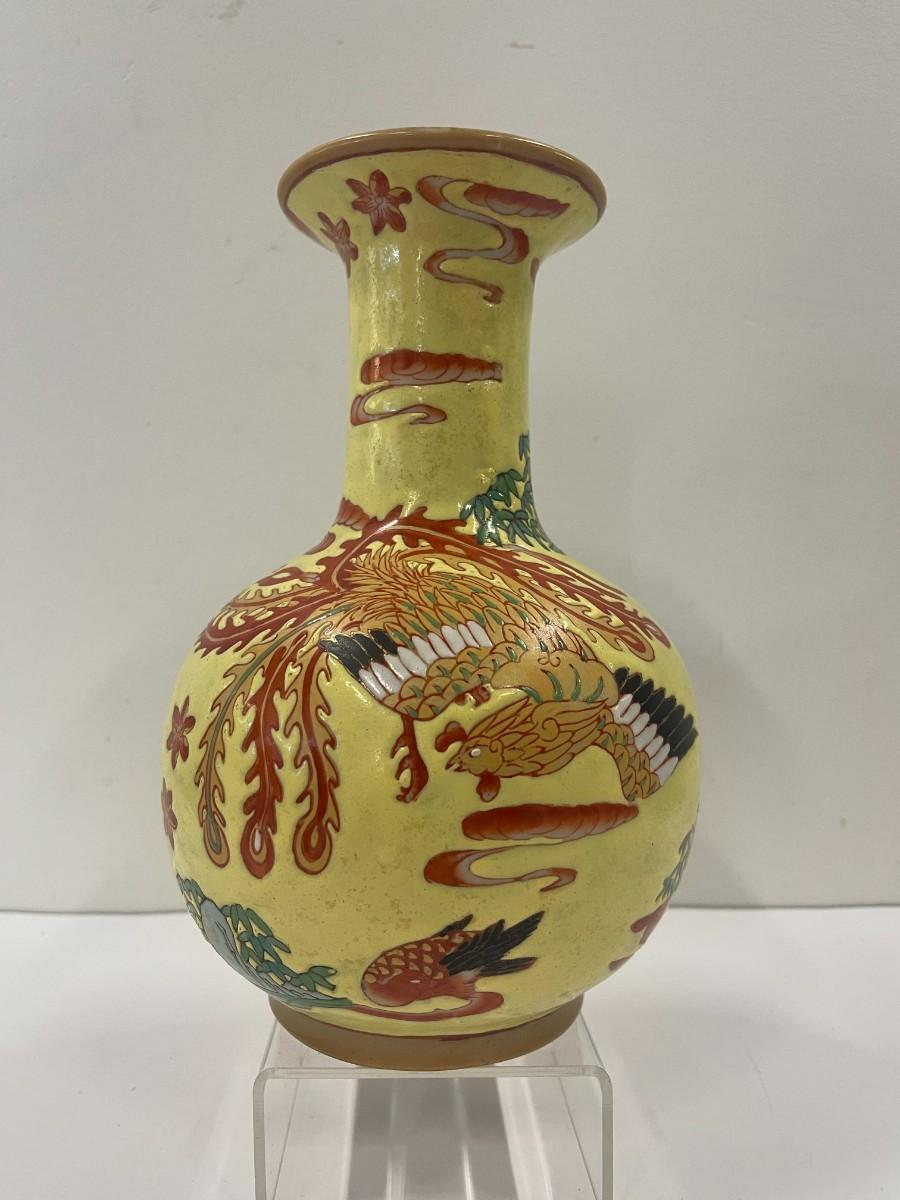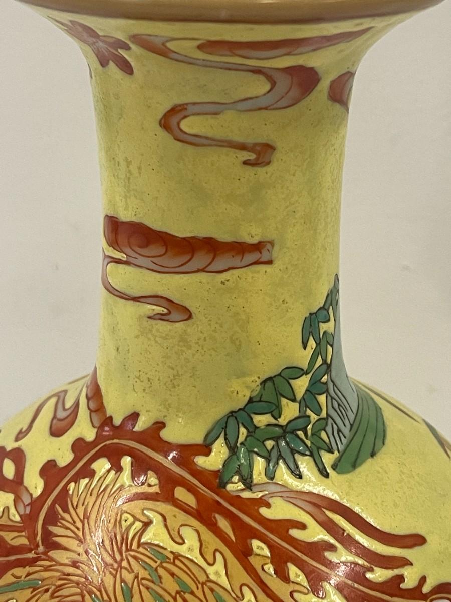 Vintage 20th Century Hand Painted Chinese Yellow Vase with Dragon Pattern