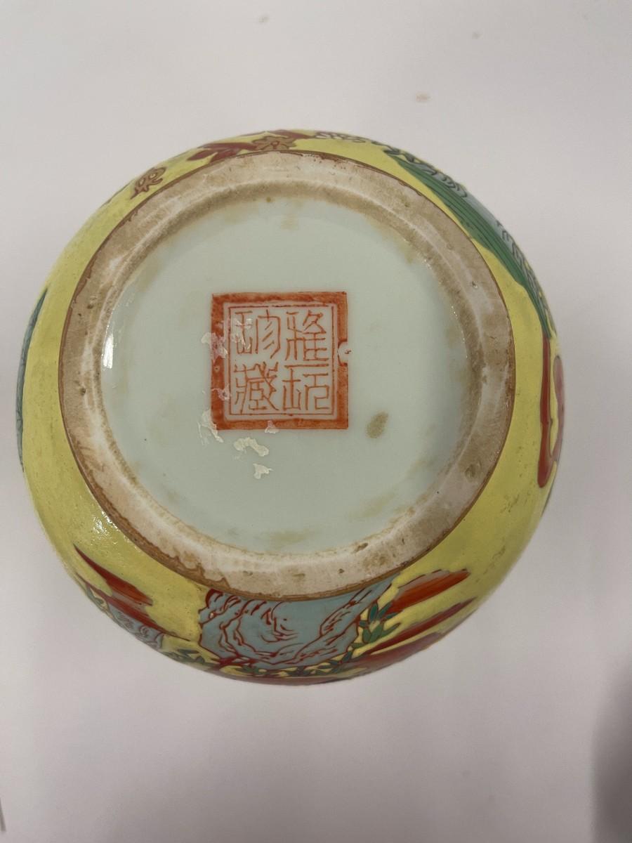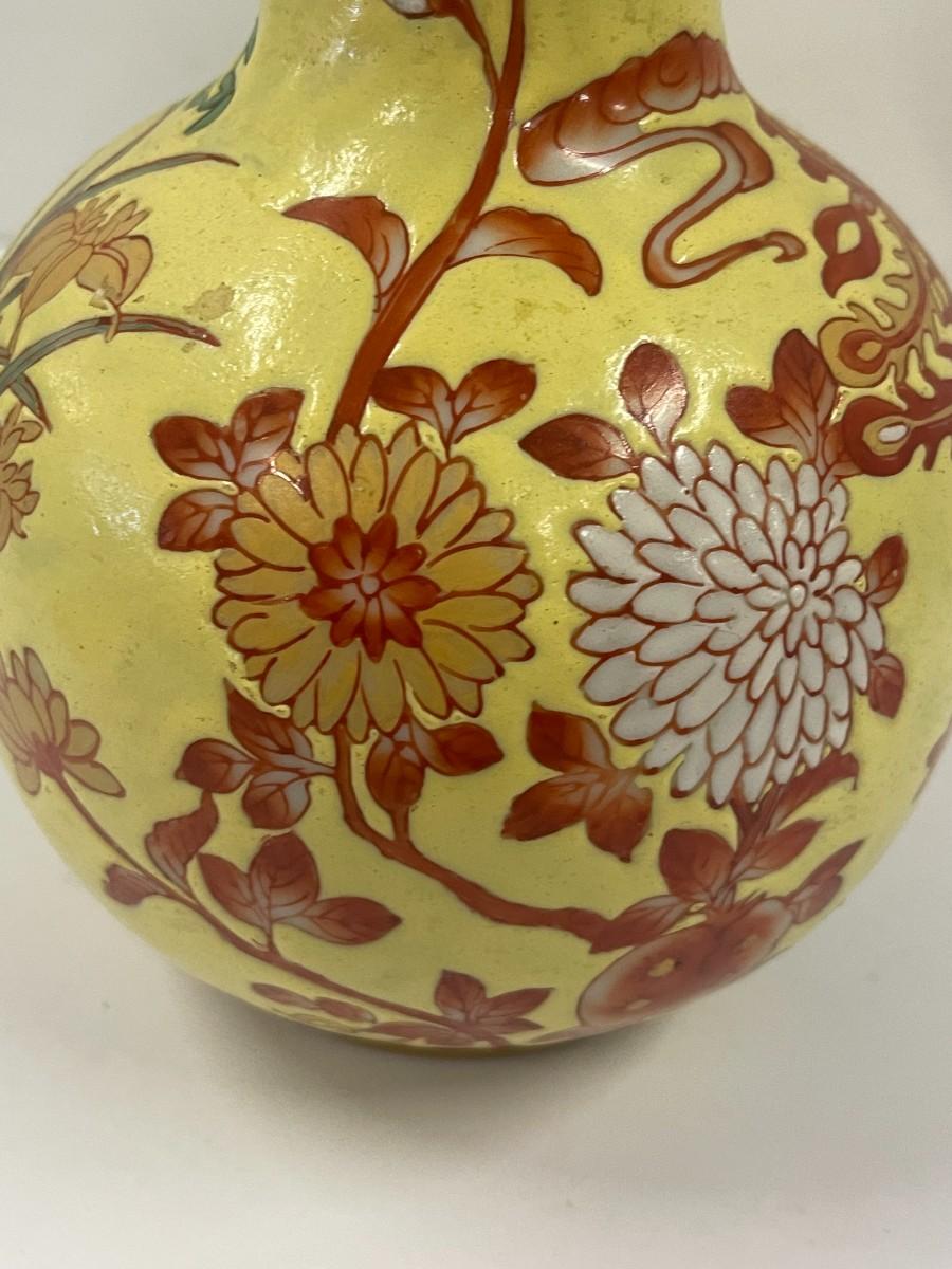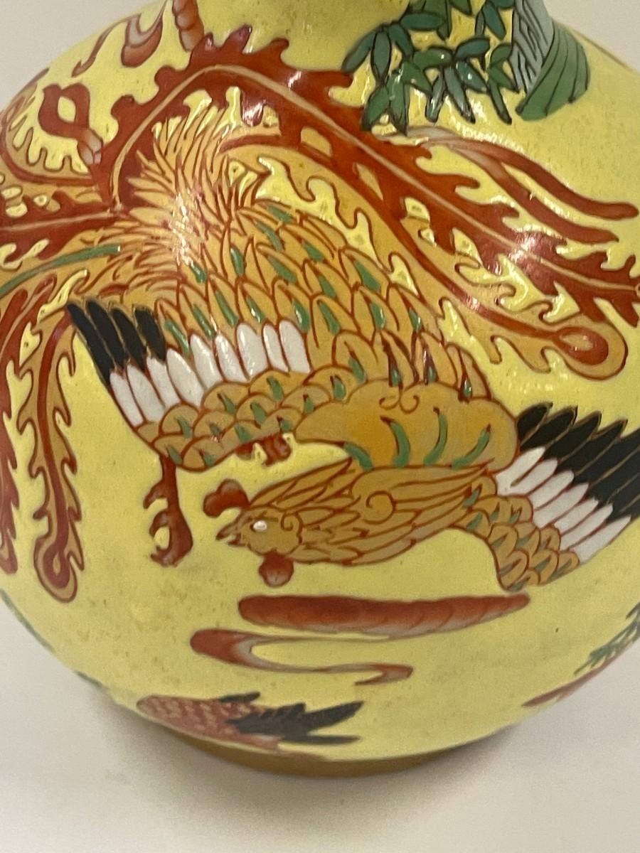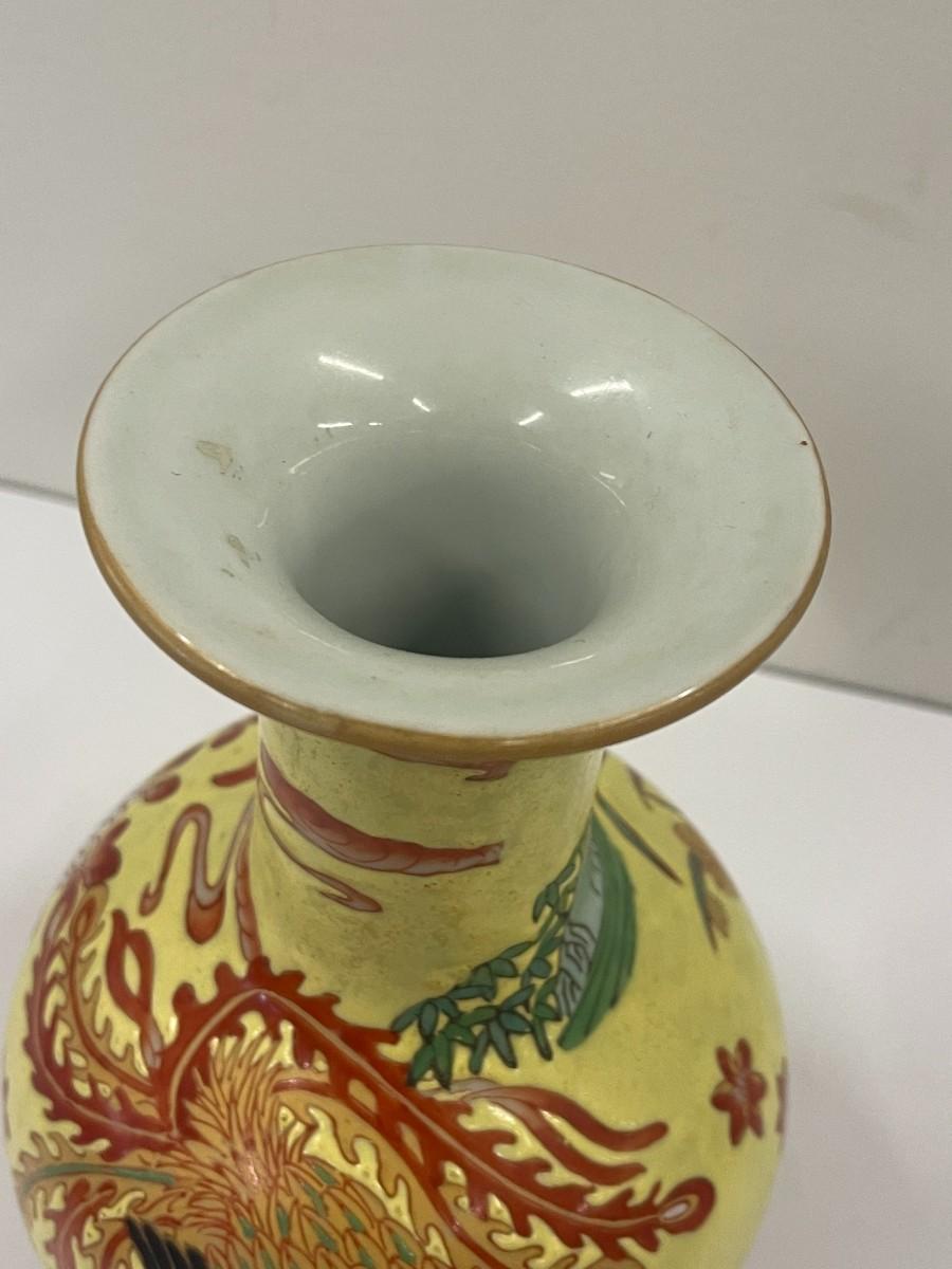 Vintage 20th Century Hand Painted Chinese Yellow Vase with Dragon Pattern