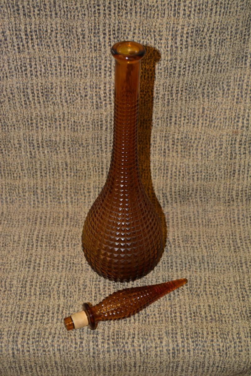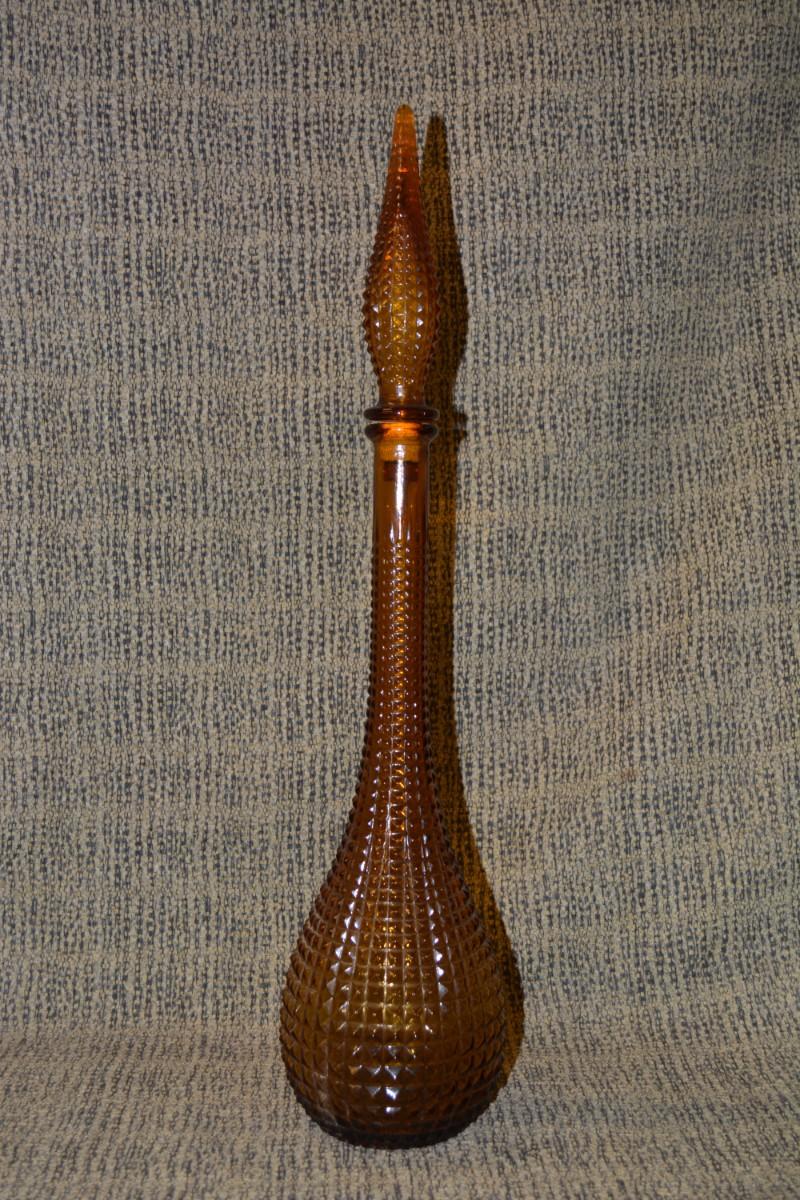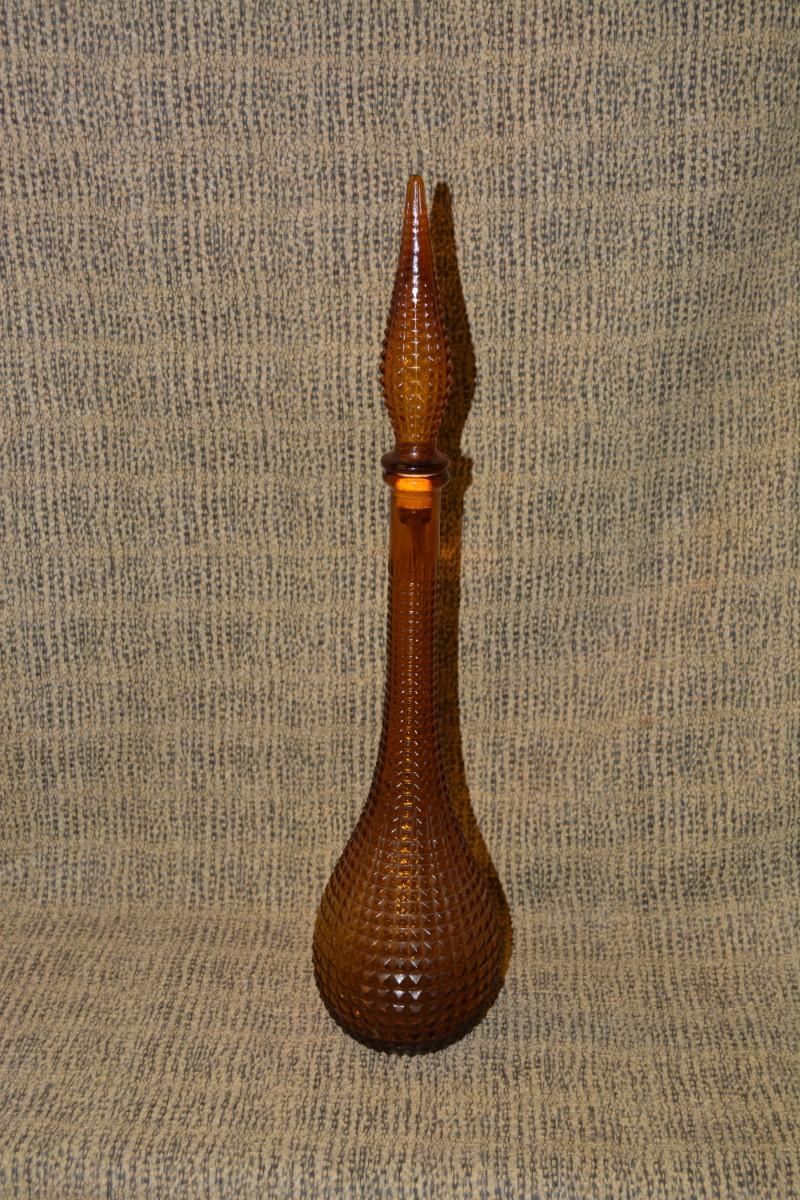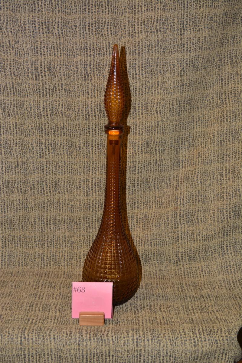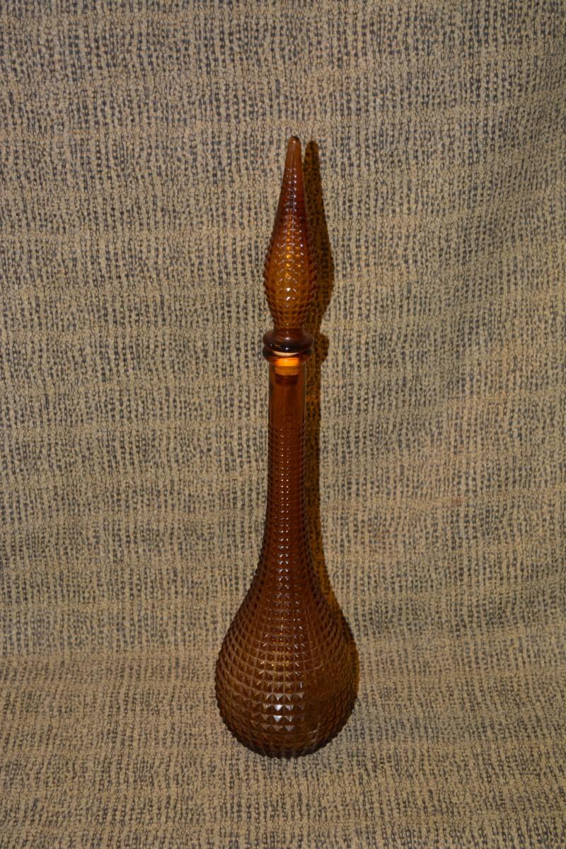 Vintage 22” Pebbled MCM Amber Decanter/Genie Bottle