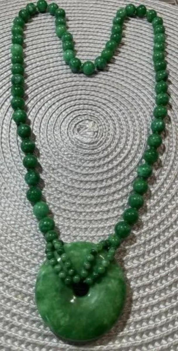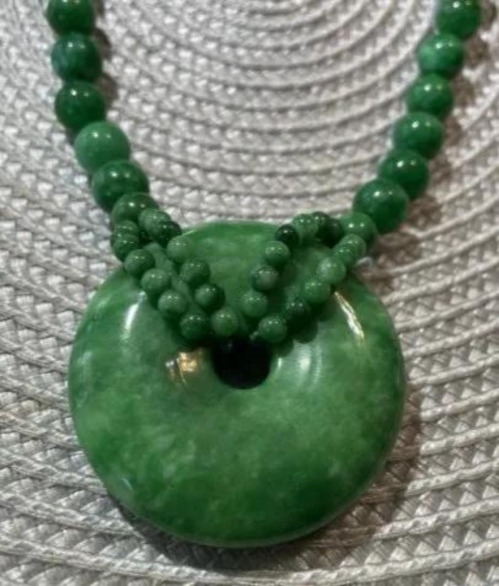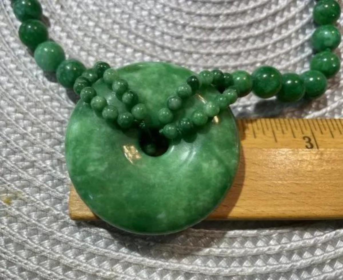 Vintage 24" Jade/Jadeite Large Bead Fashion Necklace w/2" Donut Pendant Preowned from an Estate. Very Nice Quality Beads as Pictured.