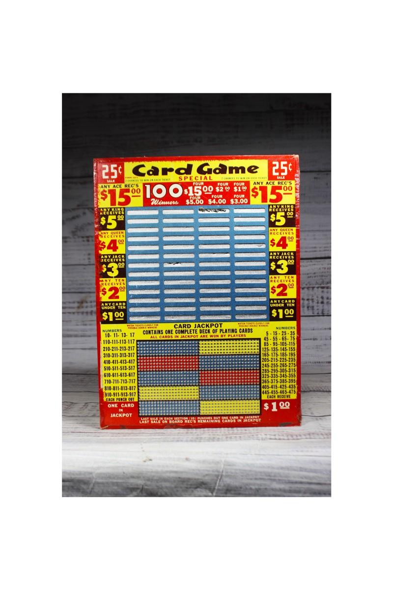Vintage 25 Cents Card Game Special Gambling Punch Board Game, there is no significant damage to the punch board and is in good vintage condition. There are only a few punched holes and is relatively unused, check pictures for more details and for sizing.