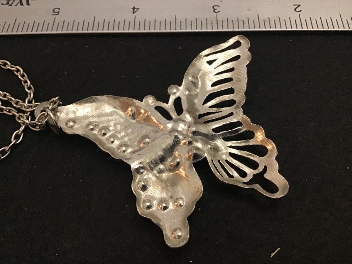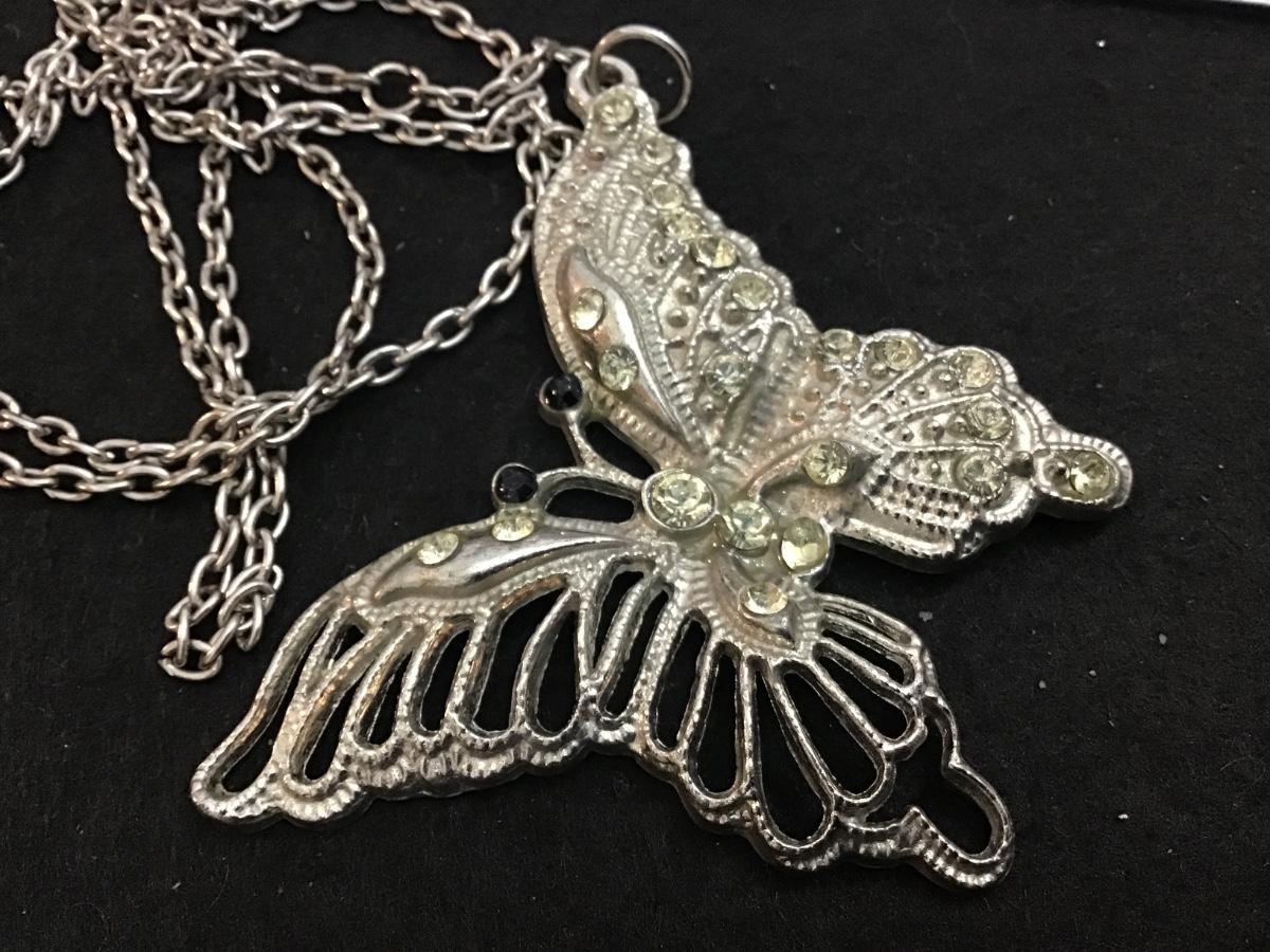 Vintage 26’ Black Bead Clear Rhinestone Butterfly