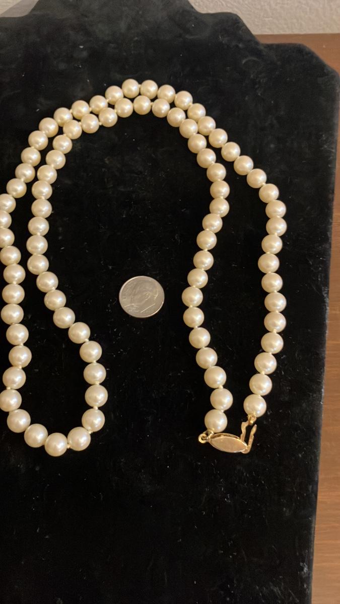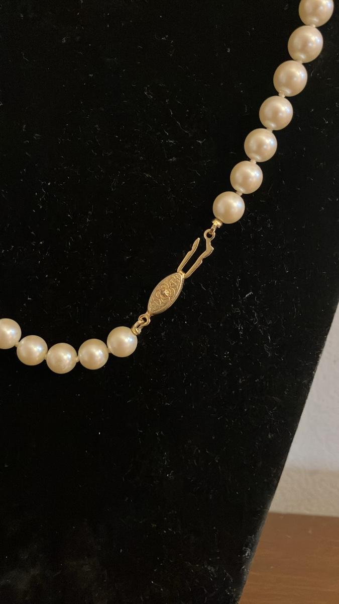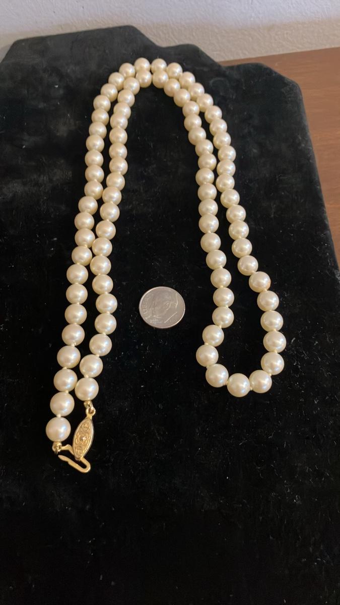 Vintage 28" Knotted White Freshwater Pearl Necklace with Gold Clasp - 7-8mm Pearls