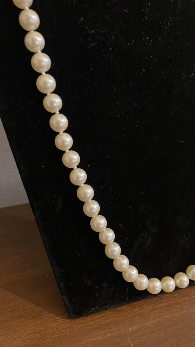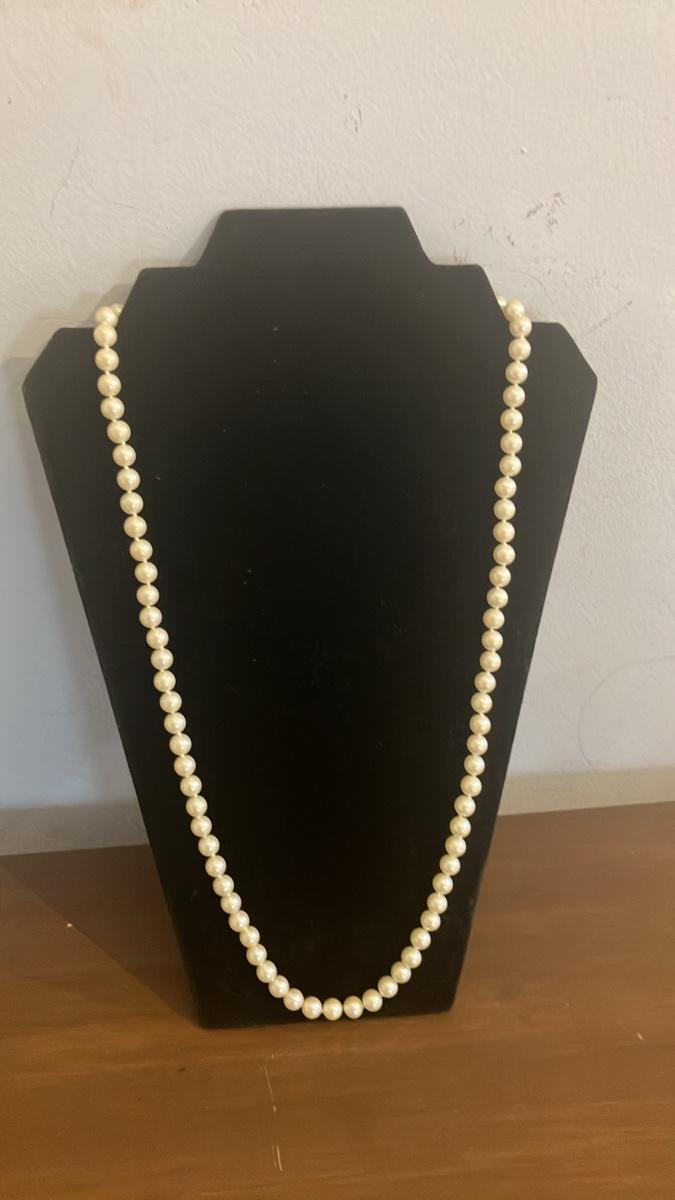 Elevate your jewelry collection with this stunning vintage-inspired 28-inch matinee-length freshwater pearl necklace, perfect for everyday glamour or special occasions. Crafted from lustrous 7–8 mm white freshwater pearls that catch the light beautifully, each pearl is meticulously hand-knotted on durable silk thread between the beads for protection and security— a hallmark of quality craftsmanship that prevents rubbing and ensures longevity.