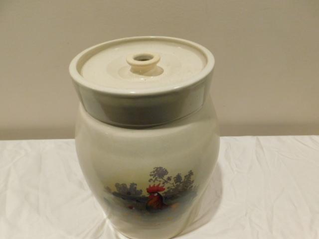 Vintage #3 Crock with Lid Rooster Marshall, TX 13'