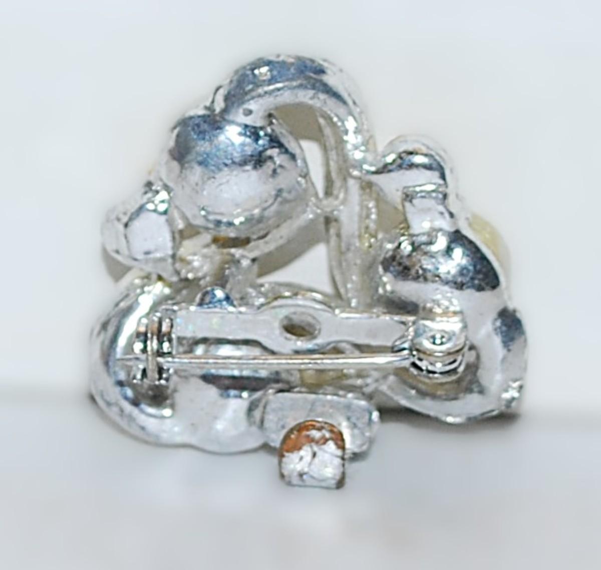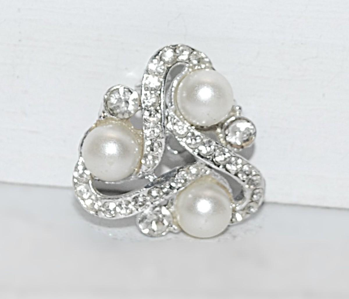 VINTAGE 3 Faux PEARL BROOCH (1" Diam.) with Swirled Rows of Clear Accent Stones on a Silver Tone Setting