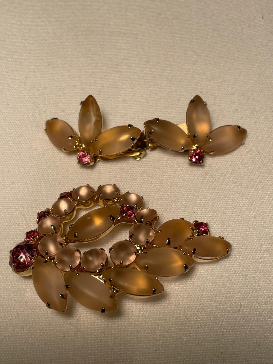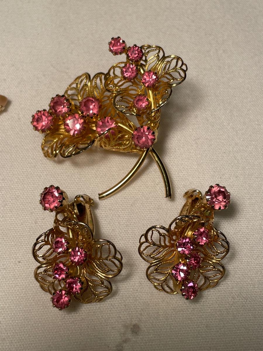 Vintage 3 pink sets of brooches & matching clip ons