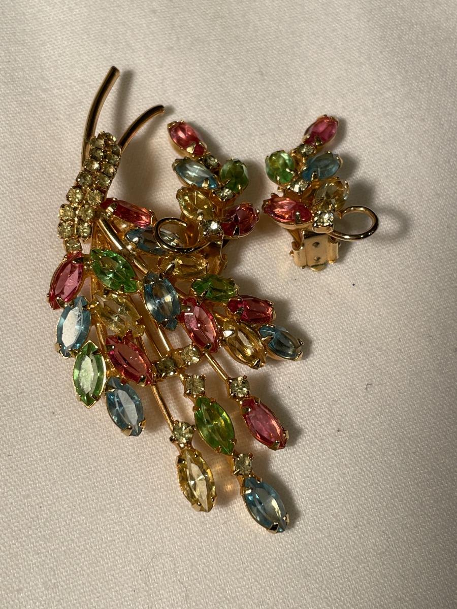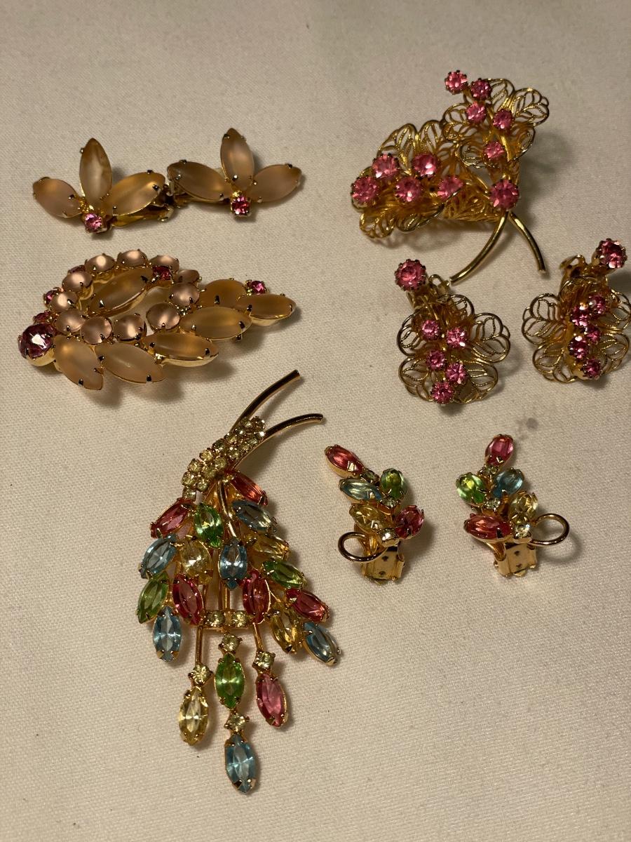 3 different sets of matching clip ons and brooches