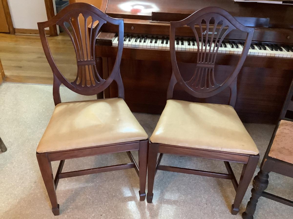 2 Shield backs 37”H. 20”W. 16”seat depth, vinyl seats