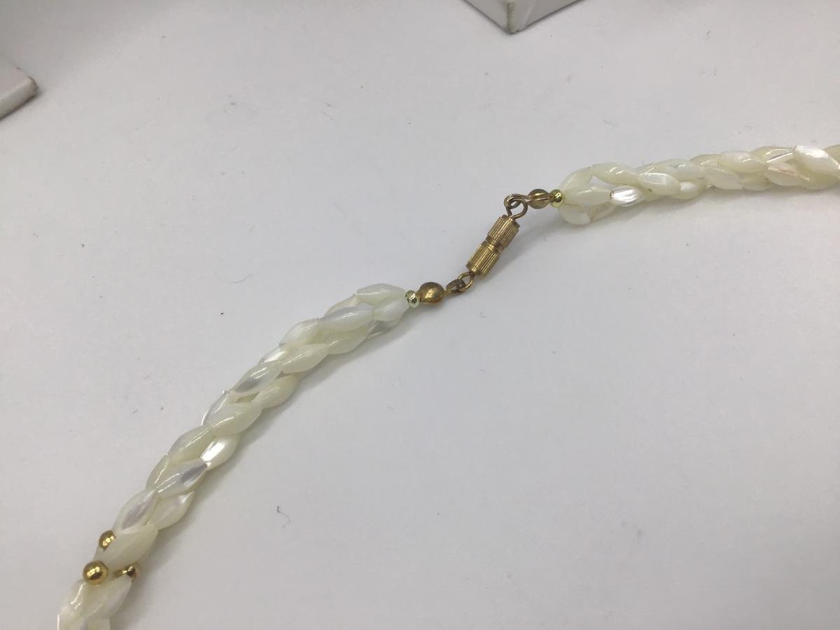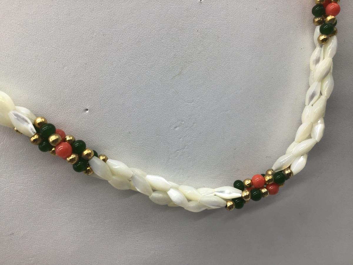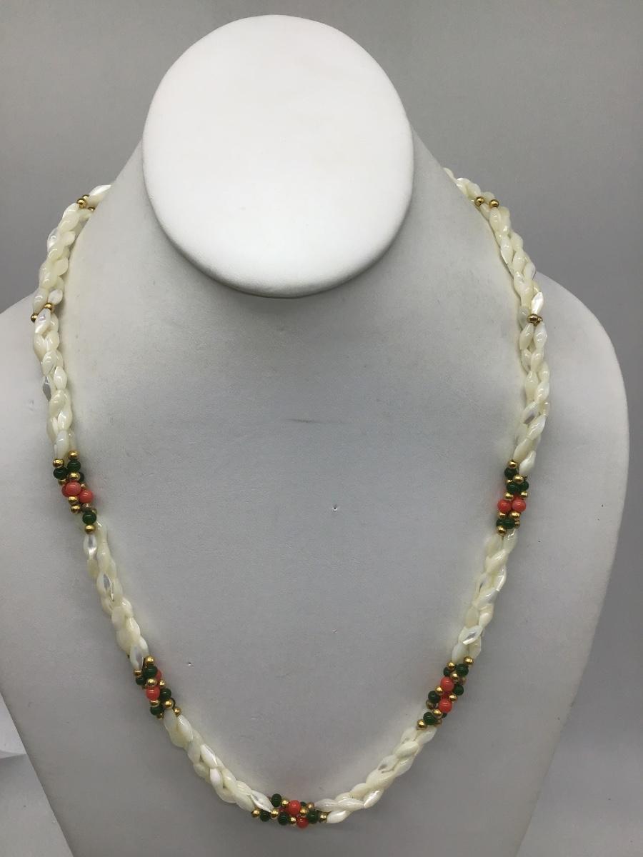 Vintage 3 Strand Rice Twisted MOP Mother of Pearl Jade Coral Necklace 1960s