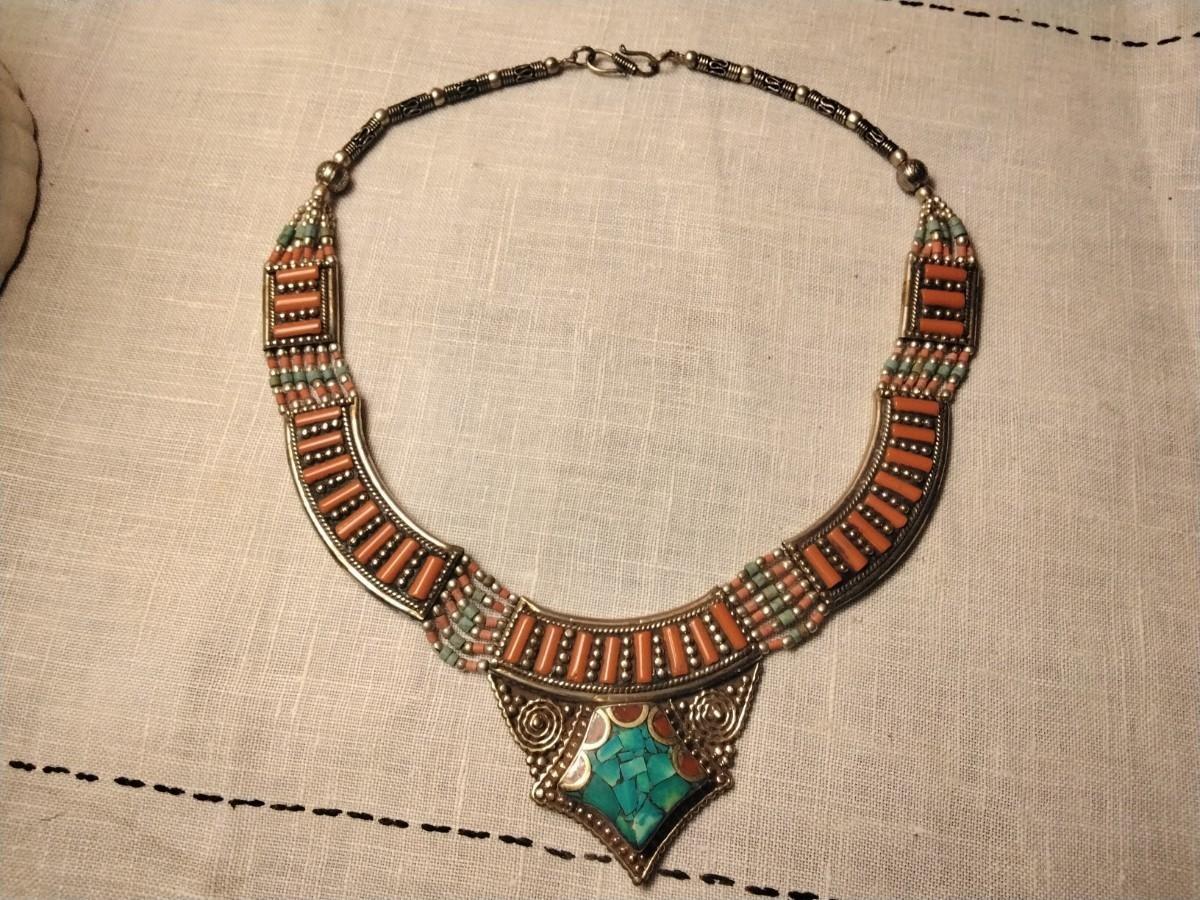 Vintage 30.00ctw Green/Red Turquoise & Carnelian Gold Vermeil Necklace 99.7g