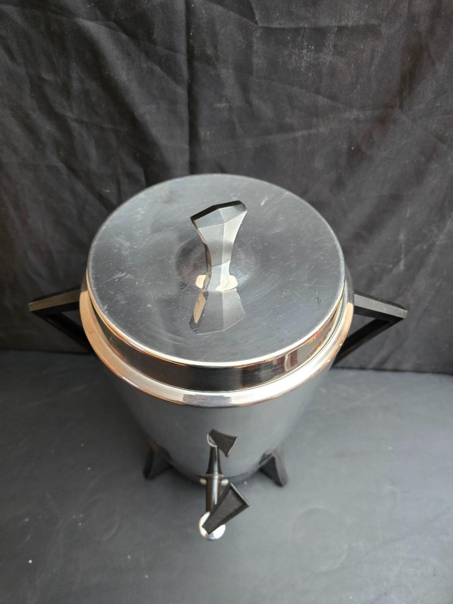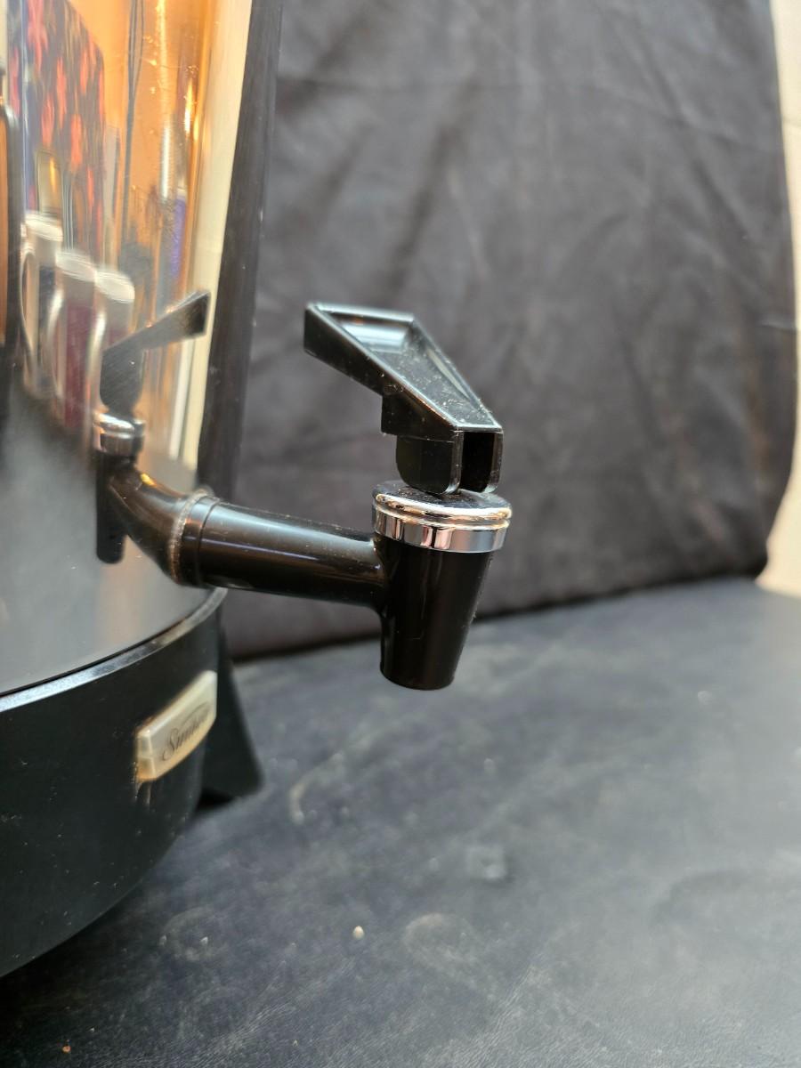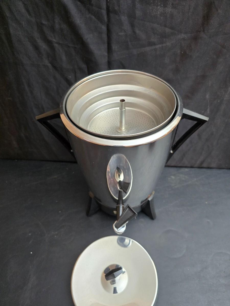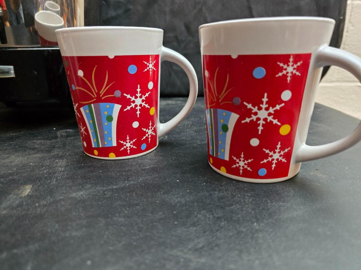 Vintage 30-cup party size Sunbeam coffee percolator, Model AP-Y & a Vtg Classic Carafe Insulated 36 oz with a collection of Christmas mugs