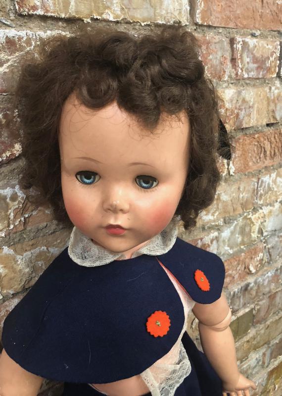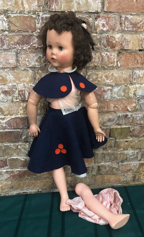 Here is a tall 32" vinyl Doll from the sixties....Needs a leg repair...otherwise good condition..no soiling or undue play wear....with original clothing...