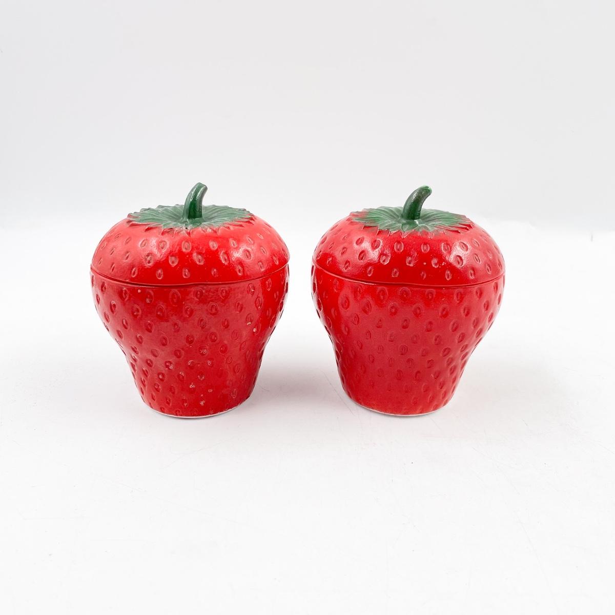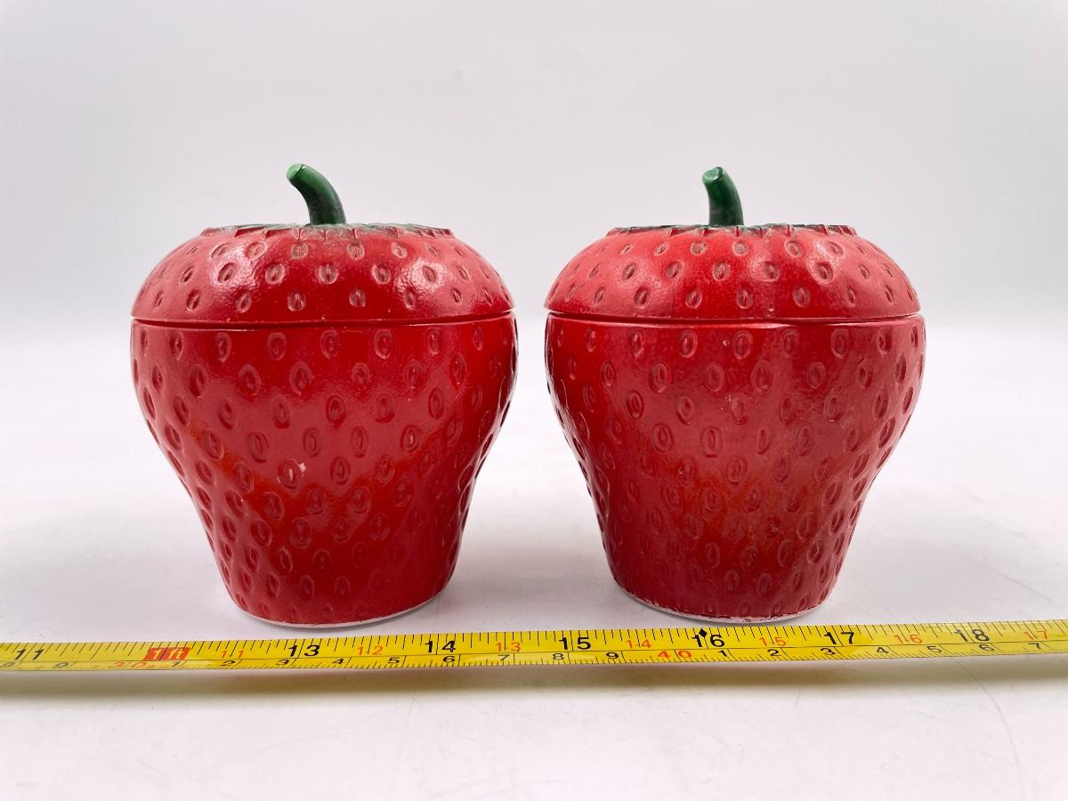 VINTAGE 3.25” STRAWBERRY JAM/JELLY MILK GLASS JARS