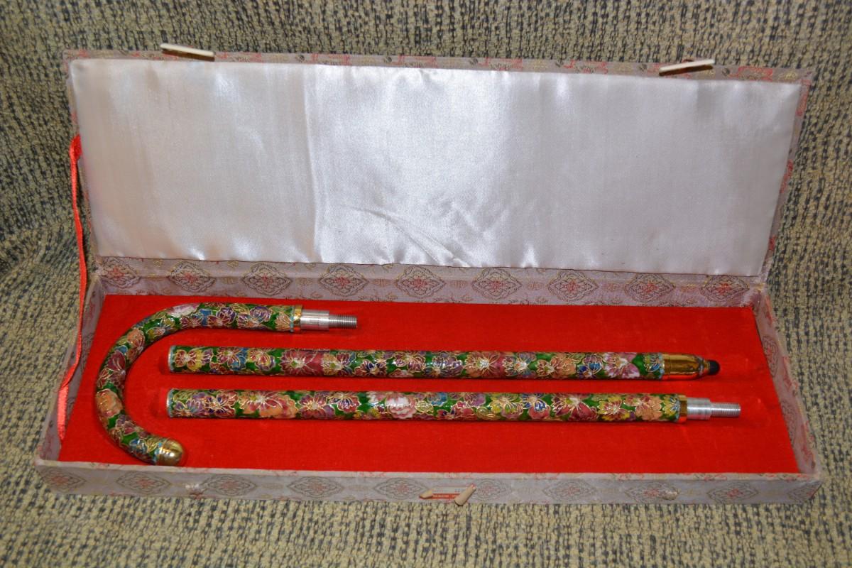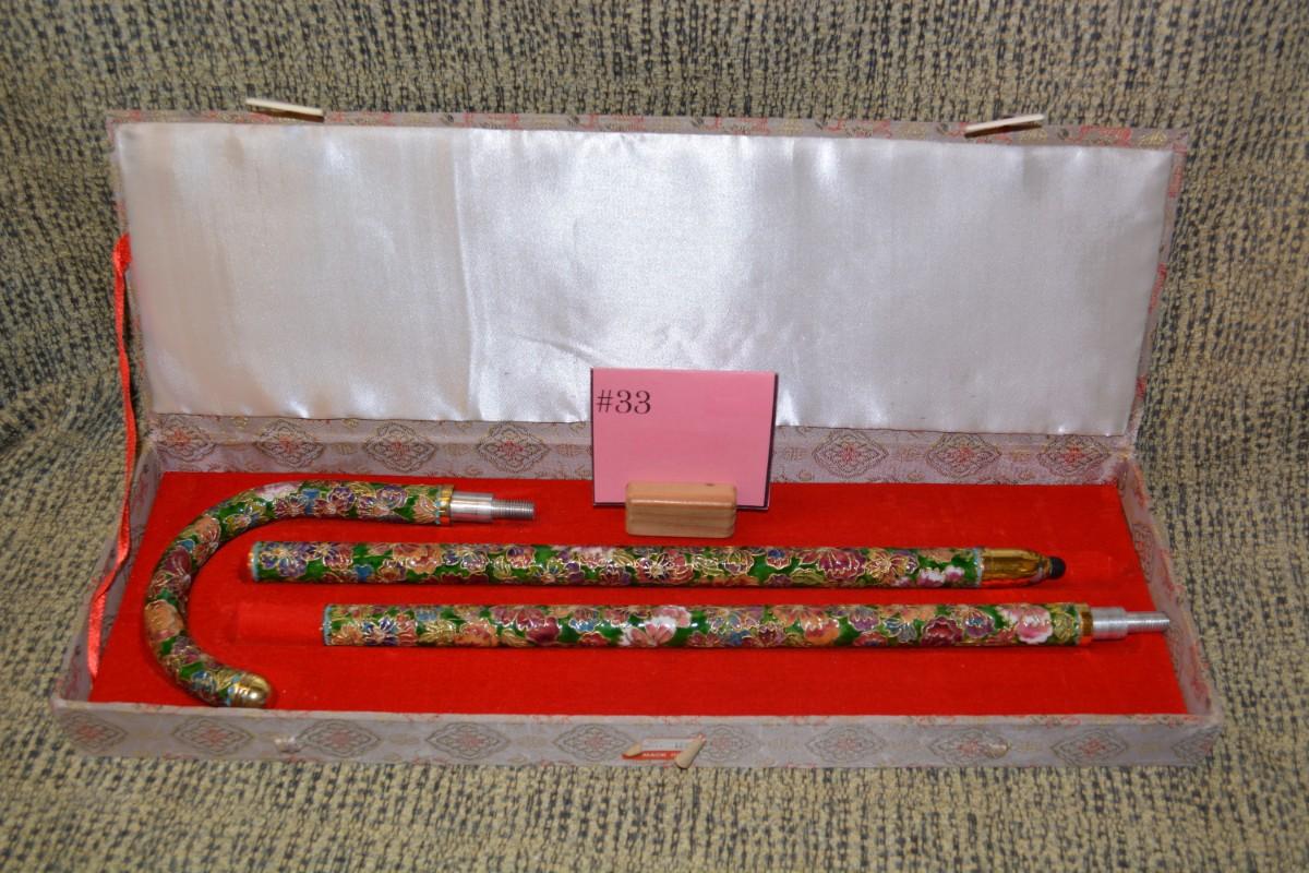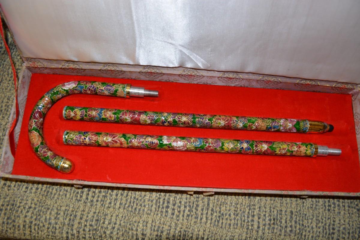 Vintage 33” 3 Section Cloisonne Cane w/ Beautiful Case, China
